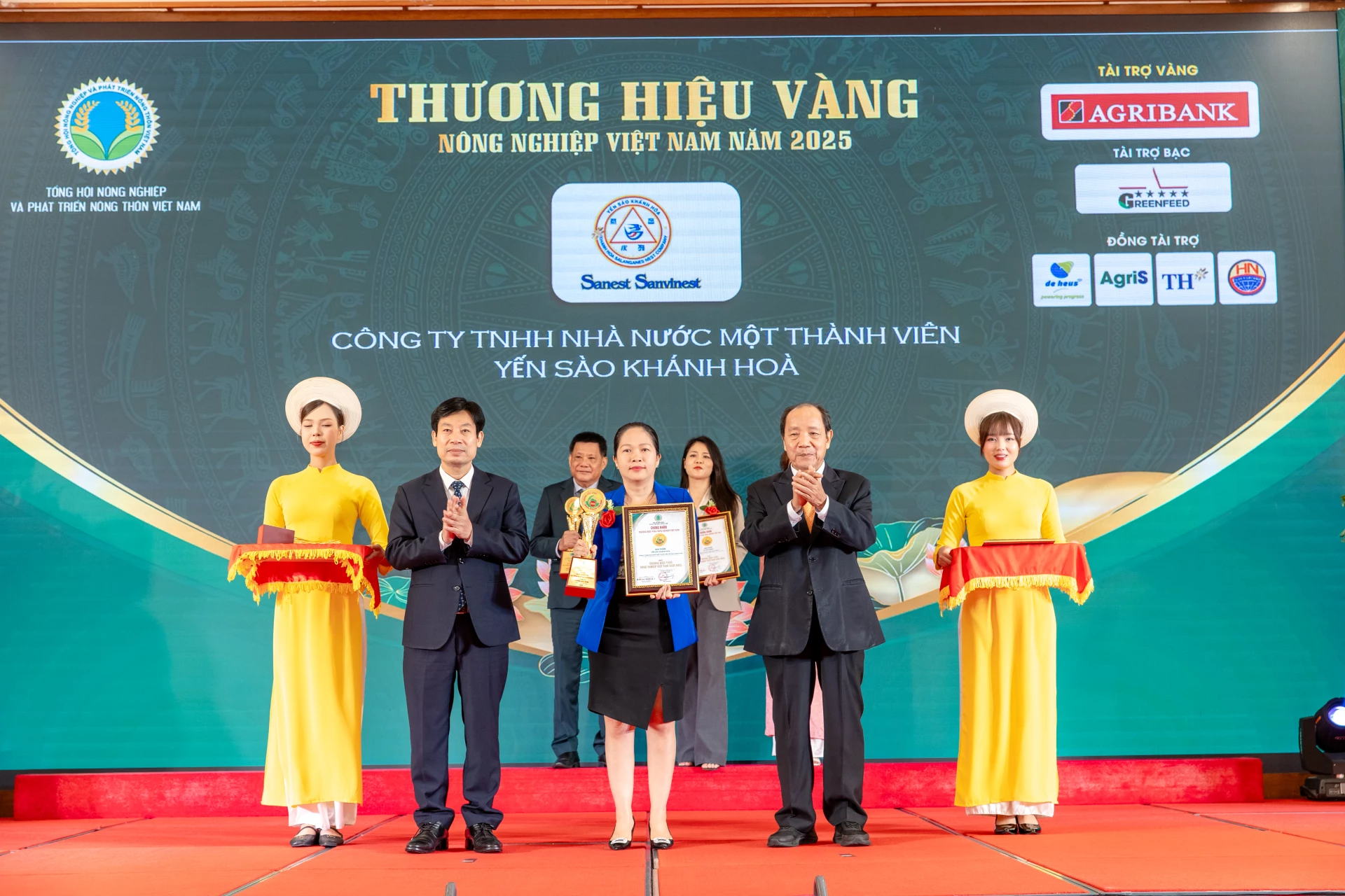 Tại chương trình, Công ty TNHH Nhà nước Một thành viên Yến sào Khánh Hòa và Công ty Cổ phần Rong biển DT Khánh Hòa (DT Group) là 2 thương hiệu được vinh danh "Thương hiệu vàng nông nghiệp Việt Nam năm 2025”.