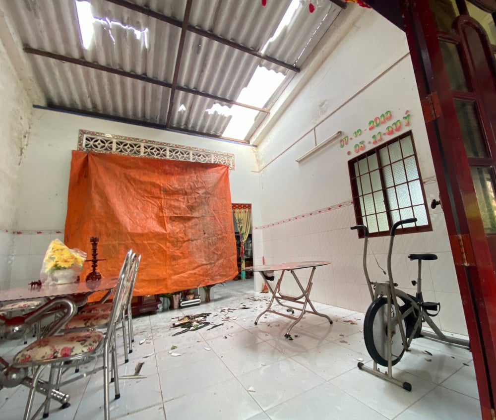 ផ្ទះបាយរបស់លោកស្រី Thuy ត្រូវបានបំផ្លិចបំផ្លាញបន្ទាប់ពីខ្យល់ព្យុះ។