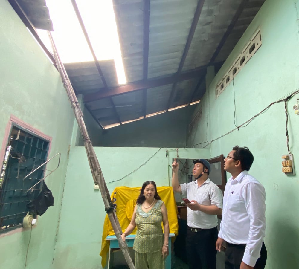 ថ្នាក់ដឹកនាំគណៈកម្មាធិការប្រជាជនឃុំ An Luc Long បានមកដល់ផ្ទះប្រជាពលរដ្ឋយ៉ាងឆាប់រហ័ស ដើម្បីយល់ដឹងពីស្ថានភាព។