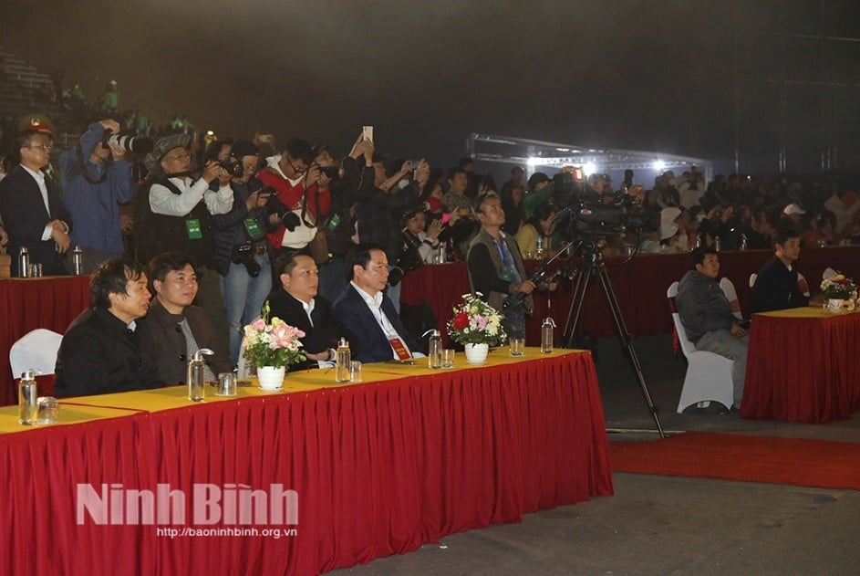 ចូលរួមកម្មវិធីមានសមមិត្ត៖ Tong Quang Thin សមាជិកគណៈកម្មាធិការអចិន្ត្រៃយ៍បក្សខេត្ត អនុប្រធានអចិន្ត្រៃយ៍គណៈកម្មាធិការប្រជាជនខេត្ត ប្រធានគណៈកម្មាធិការរៀបចំពិធីបុណ្យ Ninh Binh-Trang An លើកទី២ ឆ្នាំ២០២៣; លោក Nguyen Cao Son សមាជិកគណៈកម្មាធិការបក្សខេត្ត អនុប្រធានគណៈកម្មាធិការប្រជាជនខេត្ត; សមមិត្ត Nguyen Manh Cuong ប្រធាននាយកដ្ឋានវប្បធម៌ និង កីឡា អនុប្រធានគណៈកម្មាធិការរៀបចំមហោស្រព។ មានការអញ្ជើញចូលរួមផងដែរ ពី ថ្នាក់ដឹកនាំ មន្ទីរ អង្គភាព អង្គភាពនានា ក្នុងខេត្ត។ ថ្នាក់ដឹកនាំនៃគណៈកម្មាធិការប្រជាជននៃ ស្រុកក្រុង ; សមមិត្តនៃគណៈកម្មាធិការរៀបចំពិធីបុណ្យ; តំណាងសហគ្រាស អ្នកឧបត្ថម្ភ ទីភ្នាក់ងារសារព័ត៌មានកណ្តាល និងមូលដ្ឋាន សមមិត្តអ្នកសារព័ត៌មាន និងប្រជាជន និងភ្ញៀវទេសចរមួយចំនួនធំ។