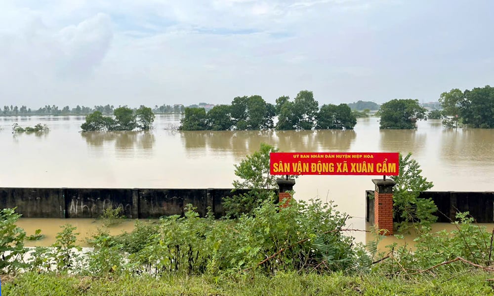 ទឹកទន្លេបានហក់ឡើង និងបានជន់លិចកីឡដ្ឋានឃុំ Xuan Cam ។ |