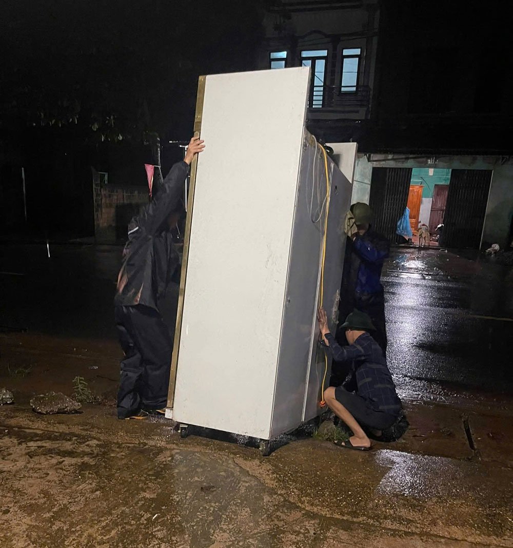 ប្រជាជននៅភូមិ Linh Phu ឃុំ Tuan Dao គេងមិនលក់។ គ្រួសារបានបើកភ្លើងដើម្បីមើលទឹក; សម្អាត និងលើកទ្រព្យសម្បត្តិដើម្បីការពារការខូចខាតដោយសារទឹកភ្លៀង និងទឹកជំនន់។ |