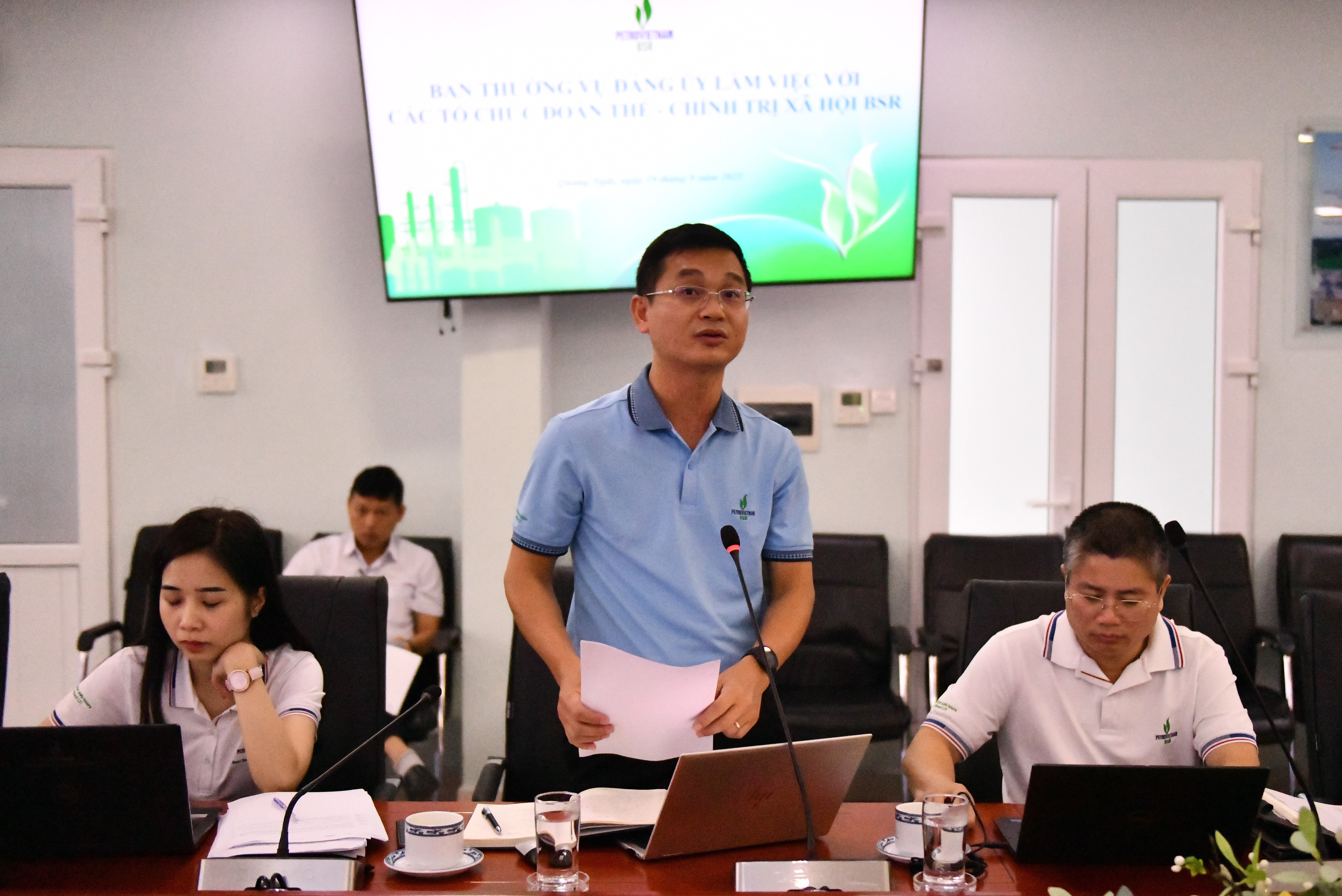 ក្នុងជំនួបនេះ សមមិត្ត Khuong Le Thanh អនុប្រធានអចិន្ត្រៃយ៍នៃគណៈកម្មាធិការបក្ស - សមាជិកក្រុមប្រឹក្សាភិបាលបានស្នើឱ្យអង្គការនយោបាយ និងសង្គមរបស់ក្រុមហ៊ុនផ្តោតសំខាន់លើធនធានក្នុងការរៀបចំឱ្យបានល្អសម្រាប់ការរៀបចំសមាជអាណត្តិឆ្នាំ ២០២៥-២០៣០ ស្របតាមសេចក្តីណែនាំលេខ ០១-CT/DU នៃគណៈកម្មាធិការបក្សនៃក្រុមថាមពល និងឧស្សាហកម្មជាតិវៀតណាម។ មន្ត្រីសំខាន់ៗនៃស្ថាប័ននីមួយៗត្រូវលើកកម្ពស់ស្មារតីទទួលខុសត្រូវចំពោះការងាររៀបចំឯកសារ និងផែនការបុគ្គលិកសម្រាប់សមាជ ដើម្បីបំពេញតម្រូវការសម្រាប់ការងារកត់ត្រាសមាជស្របតាមបទប្បញ្ញត្តិ ធានានូវការងារពិនិត្យ និងអនុម័តកំណត់ហេតុសមាជរបស់គណៈកម្មាធិការបក្ស BSR តាមផែនការ។