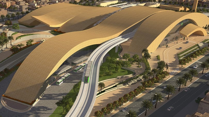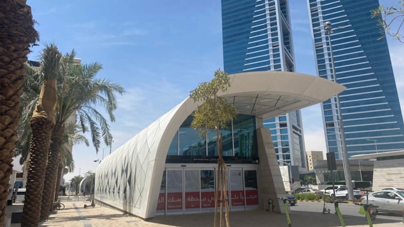 King Abdullah Financial District Station ឬ KAFD (រូបភាព) បានក្លាយជាស្ថានីយ៍ដែលមមាញឹកបំផុតរបស់បណ្តាញ ដោយមានសំណាញ់កោងដែលបំផុសគំនិតដោយលំនាំវាលខ្សាច់ដែលបង្កើតឡើងដោយខ្យល់។