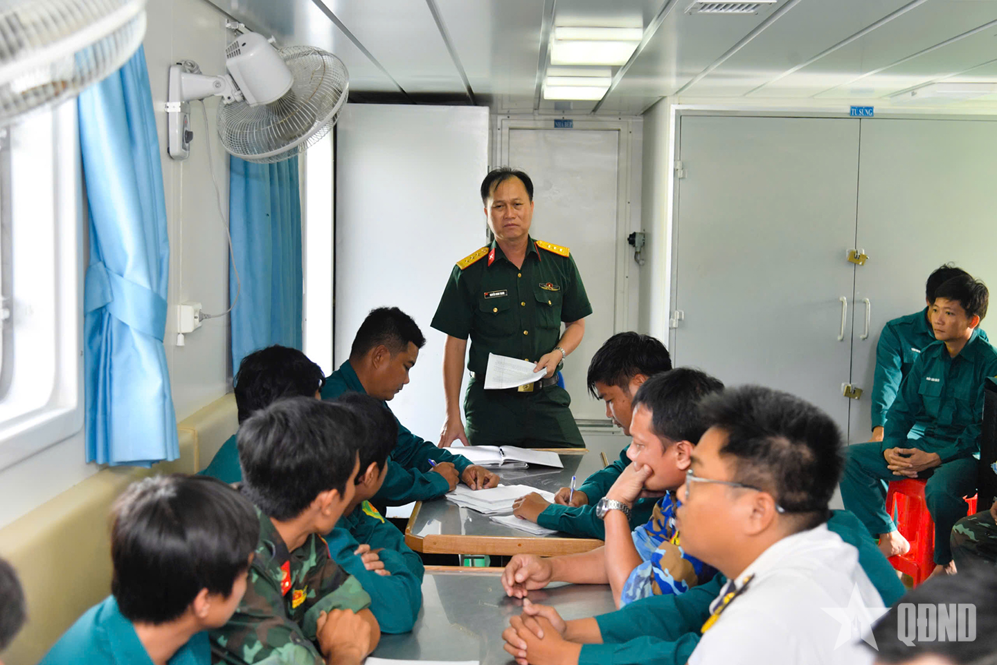 នាថ្ងៃដដែល លោកវរសេនីយ៍ឯក Nguyen Minh Thanh អគ្គមេបញ្ជាការរងនៃបញ្ជាការដ្ឋានយោធាខេត្ត An Giang និងគណៈប្រតិភូបានជួបសំណេះសំណាលសួរសុខទុក្ខ និងលើកទឹកចិត្តនាវិកនៃនាវា KG-96025-TS បន្ទាប់ពីបានបញ្ចប់ដោយជោគជ័យនូវបេសកកម្មប្រយុទ្ធប្រឆាំងនឹងការនេសាទខុសច្បាប់ គ្មានរបាយការណ៍ និងគ្មានច្បាប់គ្រប់គ្រង (IUU) នៅសមុទ្រភាគខាងត្បូង។
