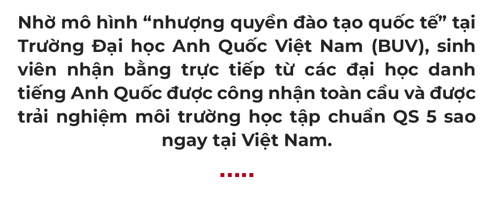 ដូច្នេះហើយត្រូវលើកឡើងពីសាលាដែលបានលើកកម្ពស់គំរូនេះឡើងយ៉ាងក្លាហាន។ ដើម្បីបង្កើនឯកសណ្ឋាននៃគំរូ និងគុណភាព សាកលវិទ្យាល័យដូចជាសាកលវិទ្យាល័យ British University Vietnam (BUV) បច្ចុប្បន្នកំពុងអនុវត្តគំរូ "សិទ្ធិបណ្តុះបណ្តាលអន្តរជាតិ"។ គំរូនេះជំនះបញ្ហាទូទៅដូចជា 100% នៃសញ្ញាបត្រត្រូវបានផ្តល់ដោយផ្ទាល់ពីសាកលវិទ្យាល័យដ៏មានកិត្យានុភាពរបស់ចក្រភពអង់គ្លេស និងត្រូវបានបញ្ជាក់ជាសកល។ គុណភាពនៃការបង្រៀន និងបរិក្ខារគឺស្មើនឹង សូម្បីតែលើសពីសាលាផ្តល់សញ្ញាប័ត្រ ដែលត្រូវបានផ្ទៀងផ្ទាត់ដោយផ្កាយ 5 QS ។