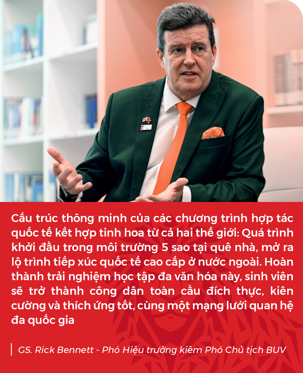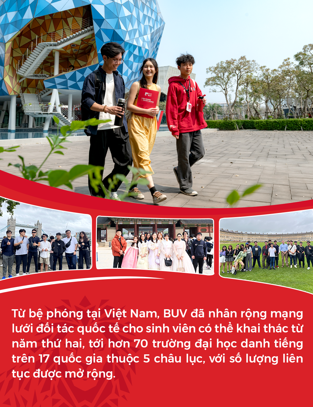 កម្មវិធីបណ្តុះបណ្តាលនីមួយៗនៅ BUV មានបណ្តាញដៃគូអន្តរជាតិផ្ទាល់ខ្លួន។ ឧទាហរណ៍ និស្សិតនៃកម្មវិធីបរិញ្ញាបត្រគ្រប់គ្រងធុរកិច្ចអន្តរជាតិនៅមហាវិទ្យាល័យពាណិជ្ជកម្មមានឱកាសផ្ទេរទៅទទួលបានបរិញ្ញាបត្រនៅសាកលវិទ្យាល័យ Liverpool (Russell Group) សាកលវិទ្យាល័យ Oxford Brookes (ជាប់ចំណាត់ថ្នាក់ទី 6 សម្រាប់គុណភាពបង្រៀននៅចក្រភពអង់គ្លេស) សាកលវិទ្យាល័យ New Brunswick (កាណាដា) ... ឬផ្ទេរទៅសិក្សាថ្នាក់អនុបណ្ឌិតនៅសាកលវិទ្យាល័យ Bristol (Top 10th Guide in UK) ។ 2026 នៅចក្រភពអង់គ្លេស) សាកលវិទ្យាល័យ Vancouver Island (កាណាដា)...