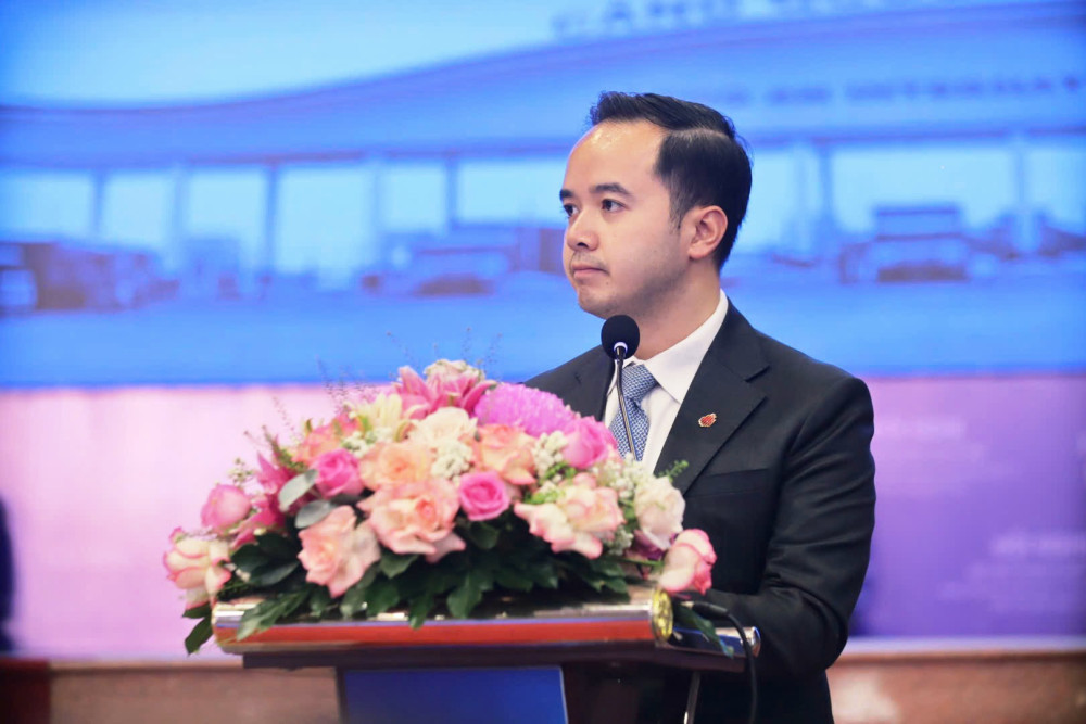 ប្រធានក្រុមប្រឹក្សាភិបាលកំពង់ផែអន្តរជាតិ Long An លោក Vo Quoc Huy ថ្លែងមតិក្នុងសន្និសីទ
