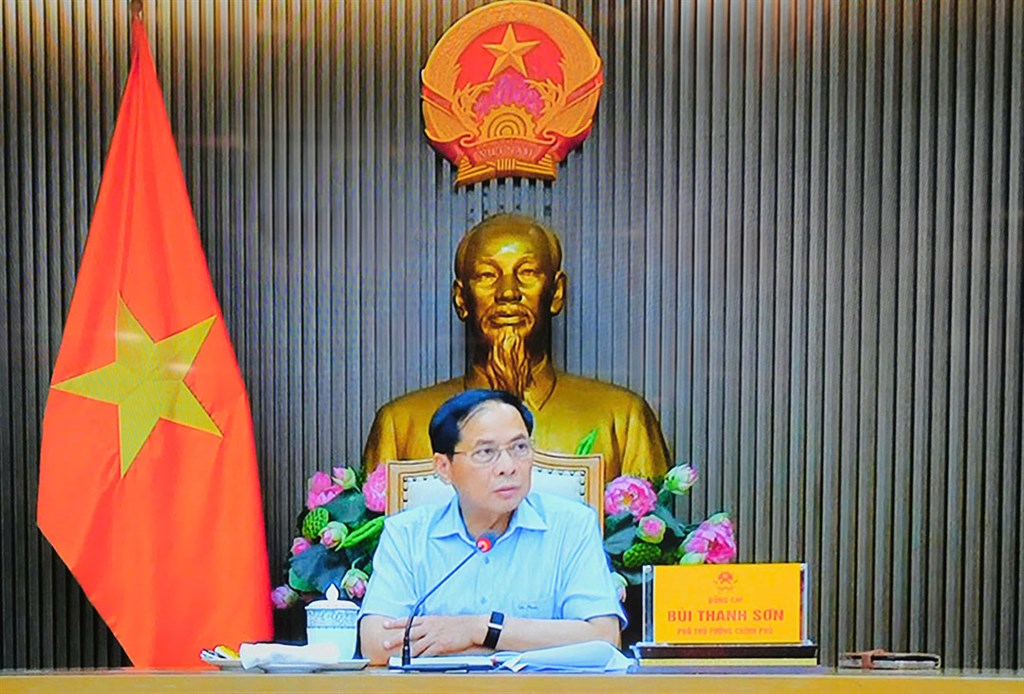 ឧបនាយករដ្ឋមន្ត្រី Bui Thanh Son ថ្លែងមតិក្នុងកិច្ចប្រជុំ។