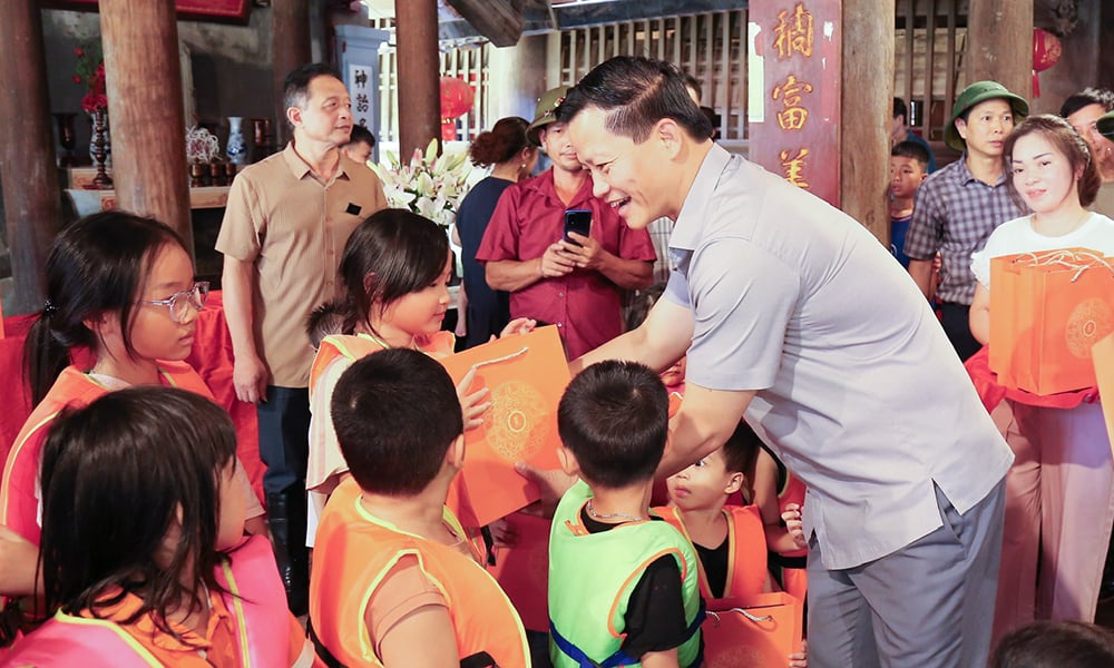 ប្រធានគណៈកម្មាធិការប្រជាជនខេត្ត លោក Vuong Quoc Tuan ជូនអំណោយដល់កុមារនៅសង្កាត់ Van Ha។ |