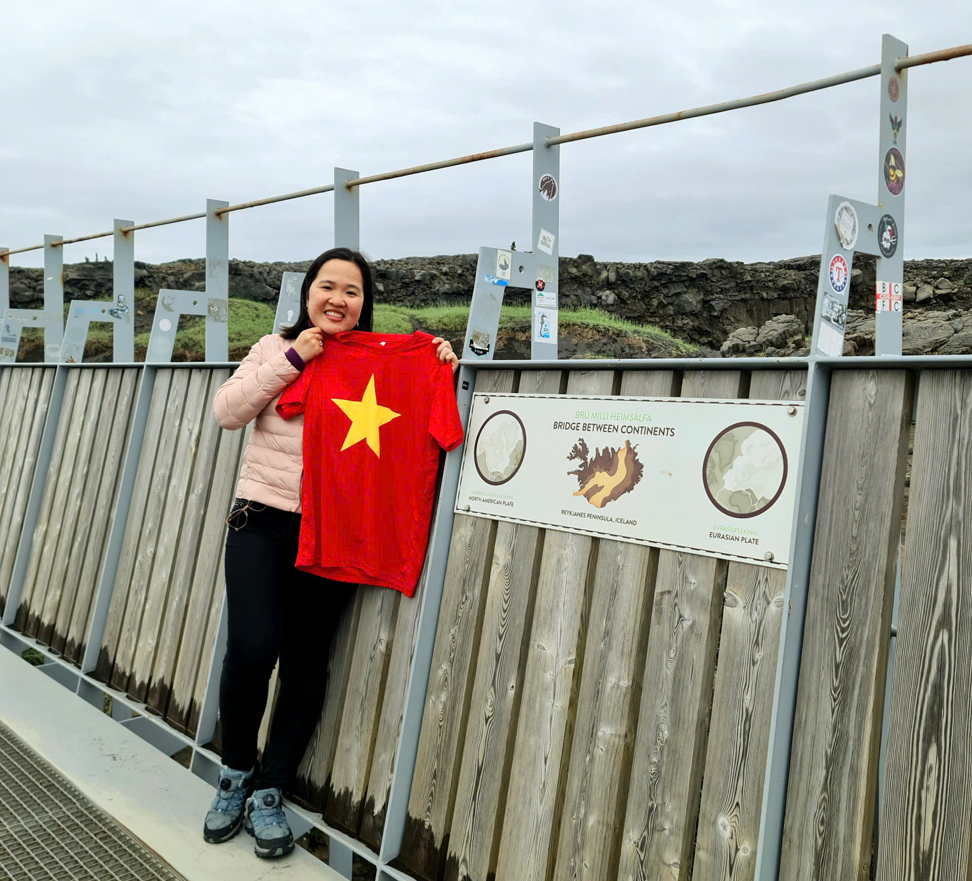ពីស្រុកកំណើតតូច Minh Chau បានបោះជើងក្នុងប្រទេសជាង 40។ នៅក្នុងរូបភាពគឺ Chau នៅ "Bridge between Continents" ដែលជាស្ពានតភ្ជាប់ទ្វីបទាំងពីរអាស៊ី-អឺរ៉ុប និងអាមេរិកខាងជើងក្នុងប្រទេស Iceland ក្នុងខែមិថុនា ឆ្នាំ 2025។