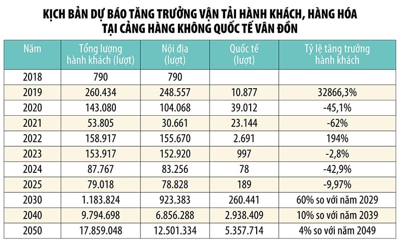 វាត្រូវបានប៉ាន់ប្រមាណថា អត្រាកំណើនអ្នកដំណើរនៃអាកាសយានដ្ឋានអន្តរជាតិ Van Don ក្នុងរយៈពេល 2025-2030 នឹងជាមធ្យម 72% ក្នុងមួយឆ្នាំ។ ជាមធ្យមក្នុងរយៈពេល 2021-2030 នឹងឈានដល់ 43.62% ក្នុងមួយឆ្នាំ។ រយៈពេល 2030-2040 នឹងឈានដល់ 24.5% ក្នុងមួយឆ្នាំ។ ហើយរយៈពេល 2040-2050 នឹងឈានដល់ 6.2% ក្នុងមួយឆ្នាំ។