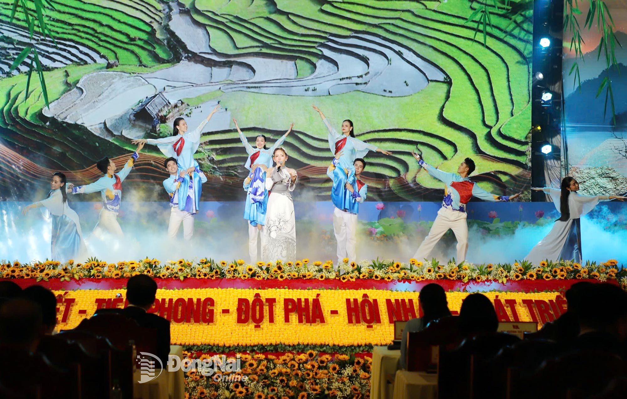 ក្រោមប្រធានបទ៖ ក្រោមទង់បក្ស - Dong Nai បោះជំហានឆ្ពោះទៅអនាគតយ៉ាងរឹងមាំ កម្មវិធីសិល្បៈរួមមានការសំដែងចម្រៀង និងរបាំចំនួន ១២ បទ៖ សរសើរបក្សកុម្មុយនិស្តវៀតណាម ការអំពាវនាវរបស់បក្សក្នុងបេះដូង ផ្លូវពូហូ - ផ្លូវហូជីមិញ វៀតណាមមានមោទនភាពបោះជំហានឆ្ពោះទៅអនាគត ស្វាគមន៍ថ្ងៃរះ ស្នេហាប្រទេសខ្ញុំ ...