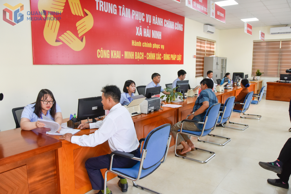 បុគ្គលិកនៃមជ្ឈមណ្ឌលសេវារដ្ឋបាលសាធារណៈឃុំ Hai Ninh ដោះស្រាយនីតិវិធីរដ្ឋបាលសម្រាប់ប្រជាជន និងអាជីវកម្ម។
