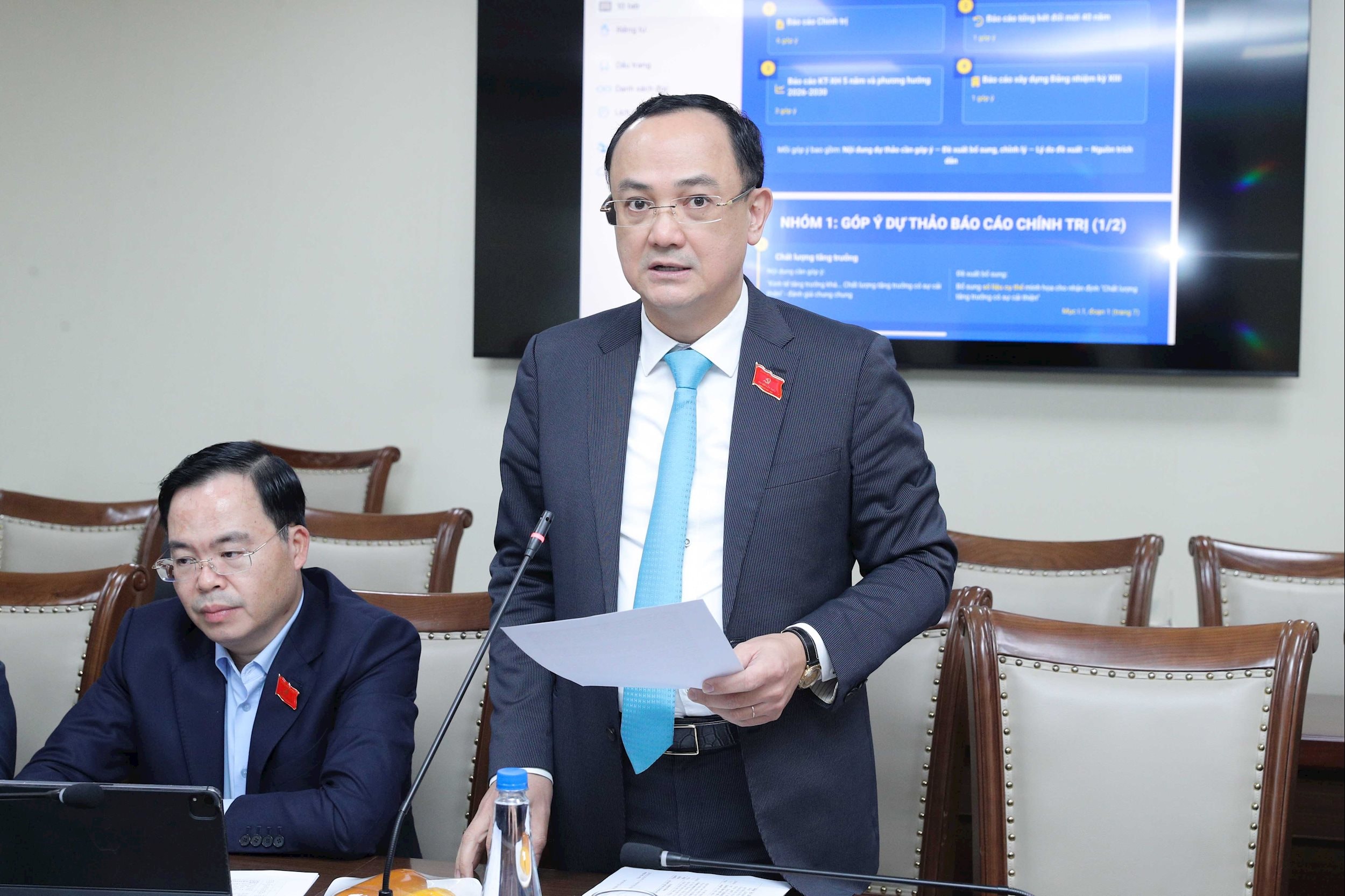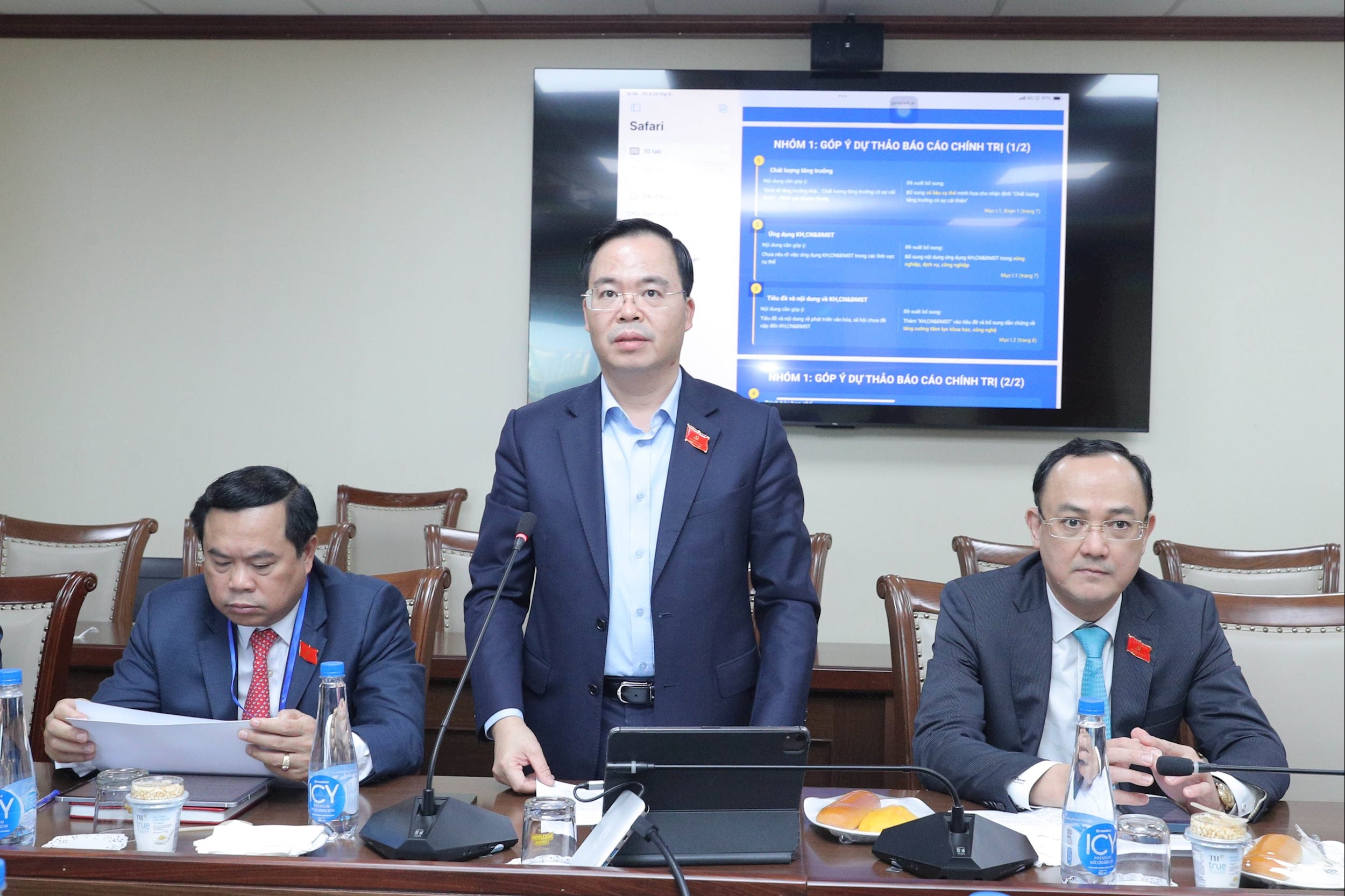 ក្នុងសម័យប្រជុំពិភាក្សាជាក្រុម គណៈប្រតិភូបានឯកភាពជាមូលដ្ឋានជាមួយនឹងខ្លឹមសារនៃរបាយការណ៍ នយោបាយ របស់គណៈកម្មាធិការបក្សរដ្ឋសភាដែលបានដាក់ជូនអង្គសន្និបាត ហើយបាននិយាយថា ខ្លឹមសារនៃរបាយការណ៍នយោបាយមានលក្ខណៈវិទ្យាសាស្ត្រ តក្កវិជ្ជា និងរចនាសម្ព័ន្ធទូលំទូលាយ។ ឆ្លុះបញ្ចាំងយ៉ាងទូលំទូលាយ ស៊ីជម្រៅ និងស្មោះត្រង់ចំពោះសកម្មភាពរបស់គណៈកម្មាធិការបក្សរដ្ឋសភាក្នុងអាណត្តិ ២០២០-២០២៥ និងទិសដៅសម្រាប់អាណត្តិឆ្នាំ ២០២៥-២០៣០ អនុវត្តតាមគោលនយោបាយរបស់បក្សយ៉ាងជិតស្និទ្ធ និងស្របតាមស្ថានភាពជាក់ស្តែងបច្ចុប្បន្ន។