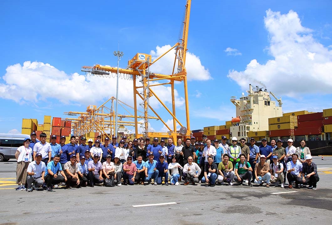 គណៈប្រតិភូបានថតរូបអនុស្សាវរីយ៍នៅ TIL International Container Terminal, Hai Phong Port (HTIT)