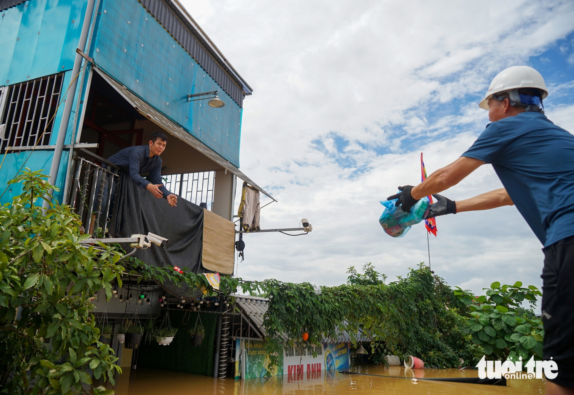 ប្រជាជន Thai Nguyen ចែករំលែកស្បៀងអាហារពេលទឹកជំនន់ - រូបថត៖ VU TUAN