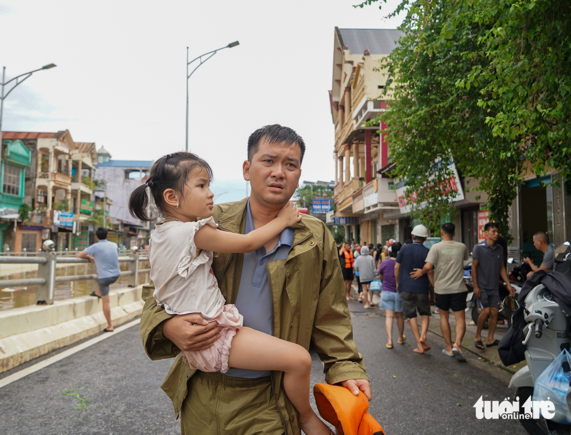 លោក Nguyen Van Dat មកពីក្រុមទី 5 វួដ Tuc Duyen កំពុងសិក្សានៅ ទីក្រុងហាណូយ ហើយបានជិះឡានក្រុងទៅកាន់ Thai Nguyen ដើម្បីស្វែងរកព័ត៌មានអំពីគ្រួសាររបស់គាត់។ លោកថាលើកចុងក្រោយដែលគាត់ទាក់ទងទៅគ្រួសារគឺនៅព្រឹកព្រលឹមថ្ងៃទី៧ ខែតុលា។ "ពេលនោះផ្ទះខ្ញុំលិចទឹកស្ទើរតែទាំងស្រុងនៅជាន់ទី១ ឥឡូវទឹកឡើងខ្ពស់ណាស់... មិនដឹងថាគ្រួសារខ្ញុំត្រូវបានជួយសង្គ្រោះហើយឬនៅ..." - លោក ដេត ញាក់សាច់។