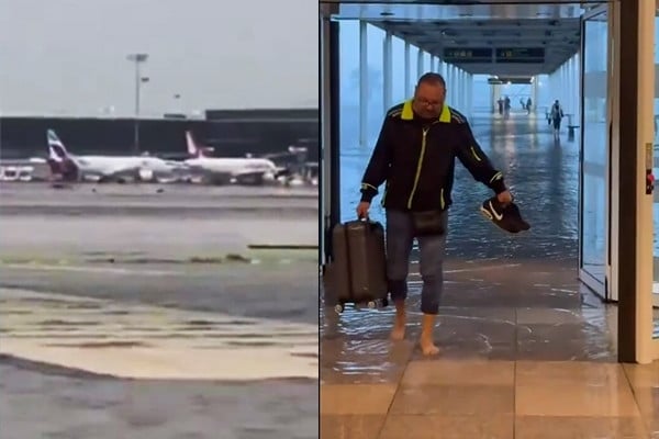 នៅឯអាកាសយានដ្ឋាន Ibiza ភ្លៀងធ្លាក់ខ្លាំងលើសសមត្ថភាពបង្ហូរ ដែលបណ្តាលឱ្យពិដាននៃកន្លែងត្រួតពិនិត្យសន្តិសុខលេចធ្លាយ ហើយទឹកភ្លៀងបានហូរចូលតំបន់អ្នកដំណើរ នេះបើយោងតាម សារព័ត៌មាន The Sun ។