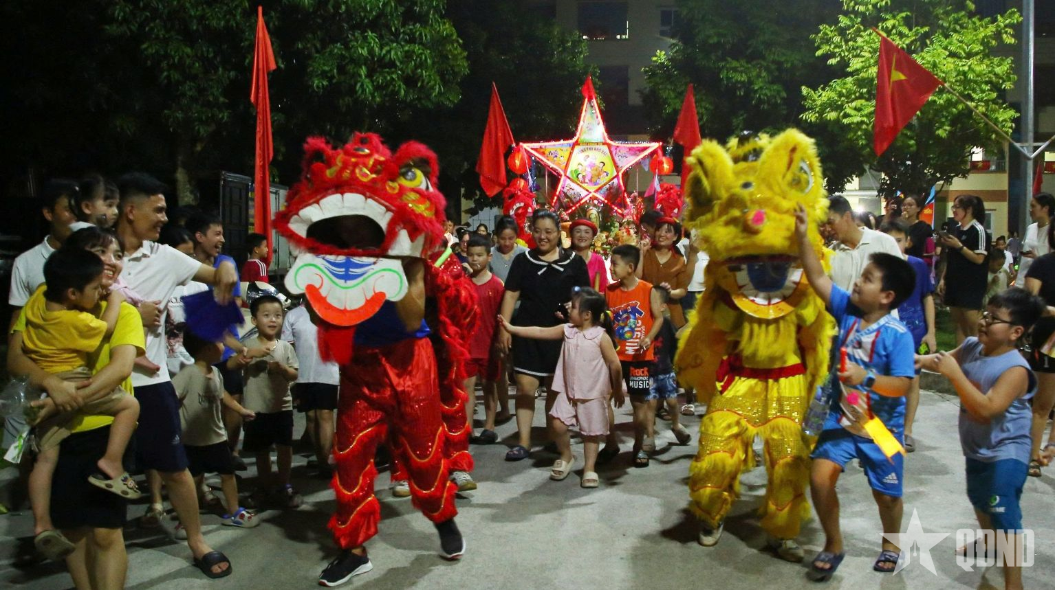 ការសម្តែងសិល្បៈ "ពូ Cuoi លេងជាមួយព្រះច័ន្ទ" ត្រូវបានសម្តែងដោយកុមារនៅតំបន់លំនៅដ្ឋានសាធារណៈ។ |