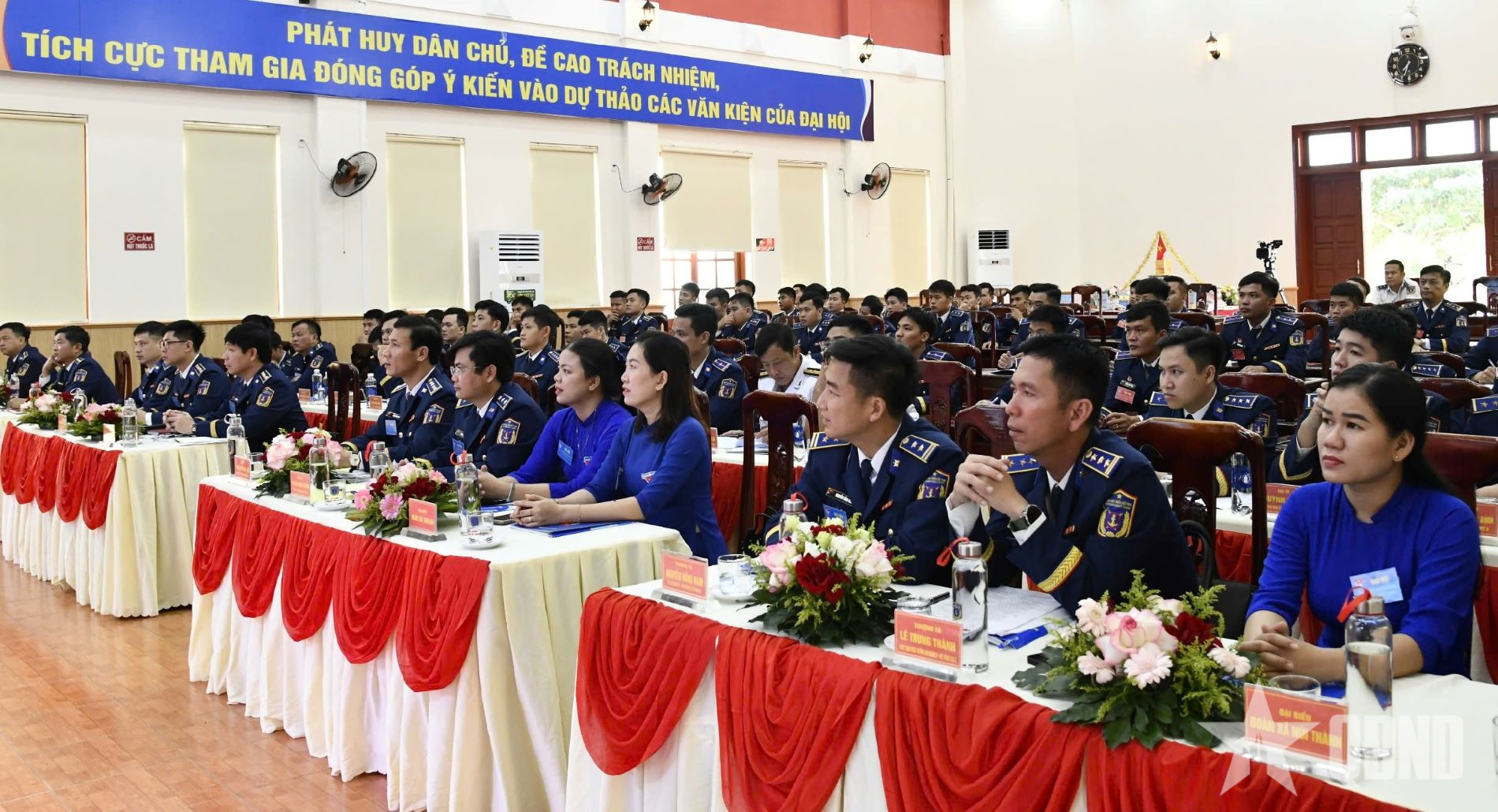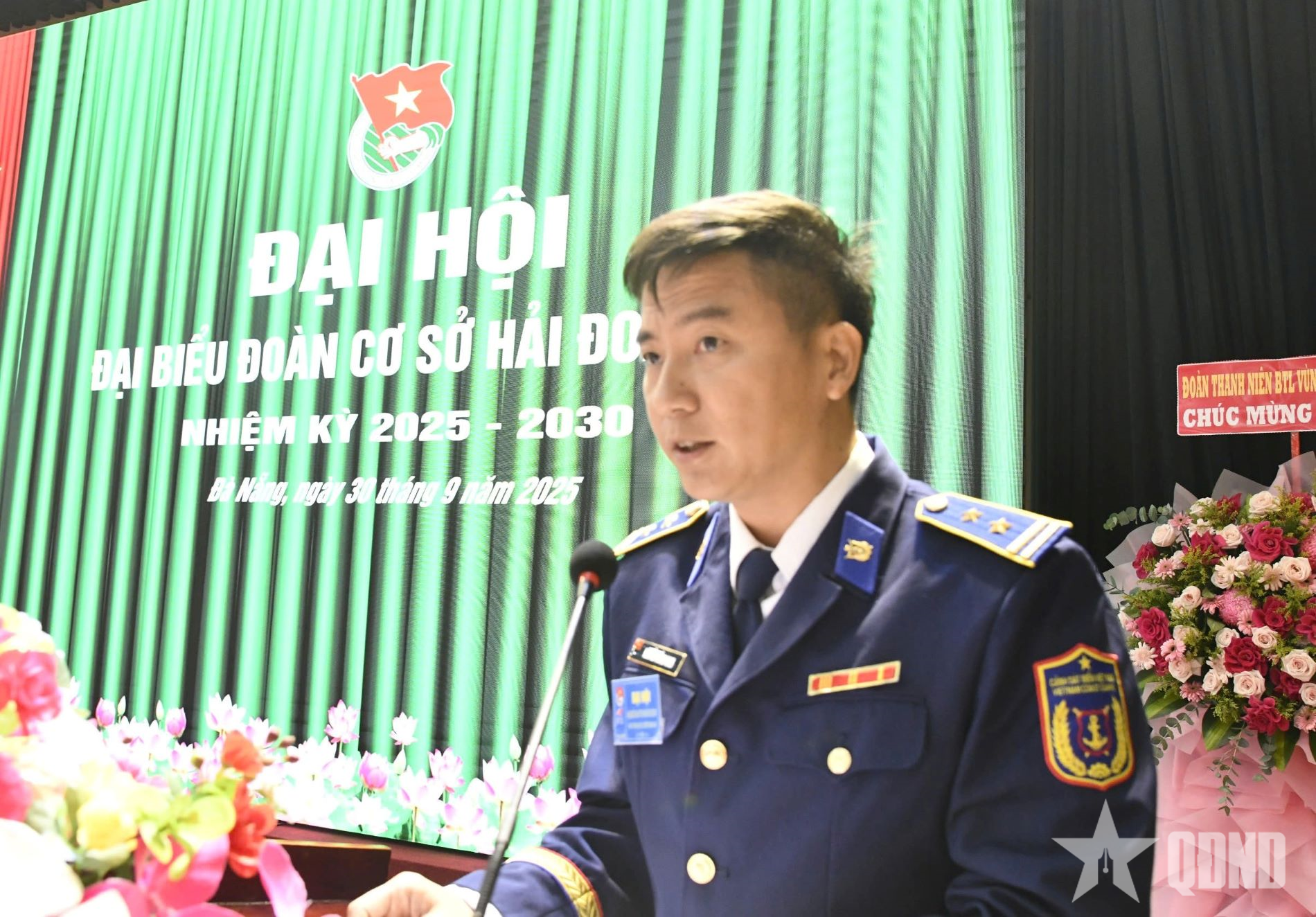 លោកវរសេនីយ៍ឯក Nguyen Hong Nam ស្នងការរងនយោបាយនៃកងពលធំទ័ពជើងទឹក ២១ ថ្លែងសុន្ទរកថាដឹកនាំសមាជ។ |