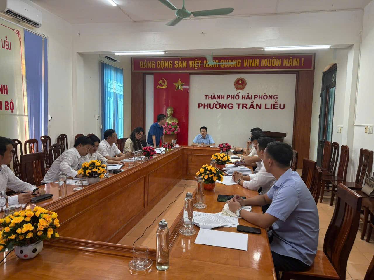 នាថ្ងៃទី 5 ខែមិថុនា ឆ្នាំ 2025 សមមិត្ត Pham Tuan Hai - អនុប្រធាននាយកដ្ឋានឧស្សាហកម្ម និងពាណិជ្ជកម្មបានដឹកនាំកិច្ចប្រជុំជាមួយគណៈកម្មាធិការប្រជាជននៃសង្កាត់ Tran Lieu គណៈកម្មាធិការប្រជាជននៃសង្កាត់ Kinh Mon និងក្រុមហ៊ុន Newland Investment Joint Stock Company - អ្នកវិនិយោគនៃចង្កោមឧស្សាហកម្ម An Phu ដើម្បីស្វែងយល់ពីវឌ្ឍនភាពនៃការវិនិយោគលើការសាងសង់ហេដ្ឋារចនាសម្ព័ន្ធបច្ចេកទេសនៃឧស្សាហកម្ម An Phu Clu។
