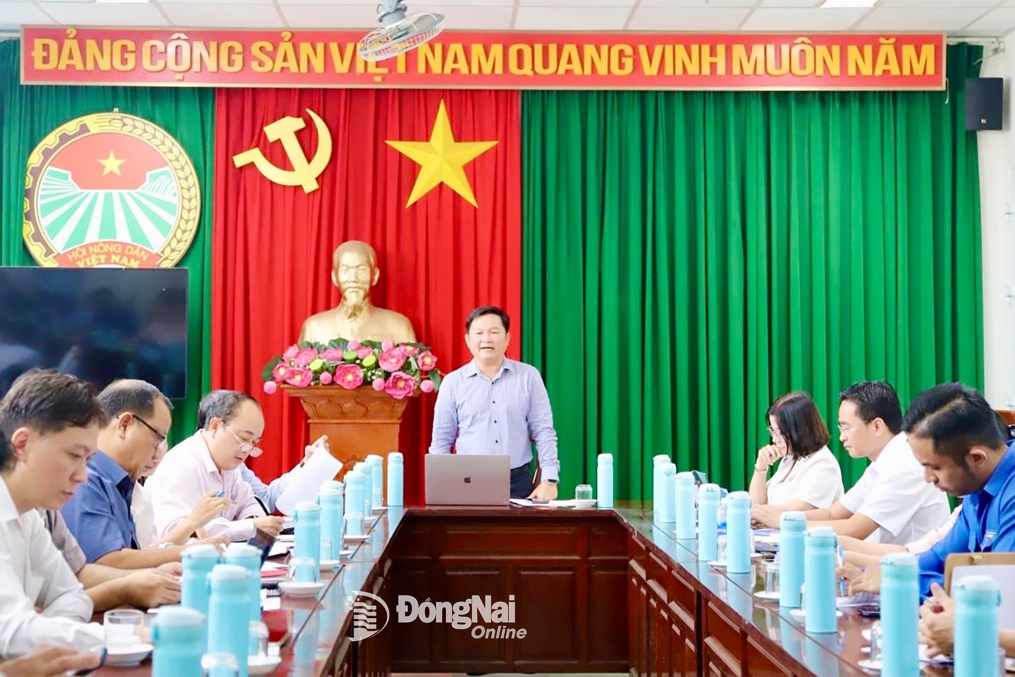 សមាជិកគណៈកម្មាធិការបក្សខេត្ត អនុប្រធានគណៈកម្មាធិការមជ្ឈឹមរណសិរ្សមាតុភូមិវៀតណាមខេត្ត ប្រធានសមាគមកសិករ Dong Nai លោក Nguyen Huu Nguyen ជាអធិបតីកិច្ចប្រជុំ។ រូបថត៖ B.Nguyen |