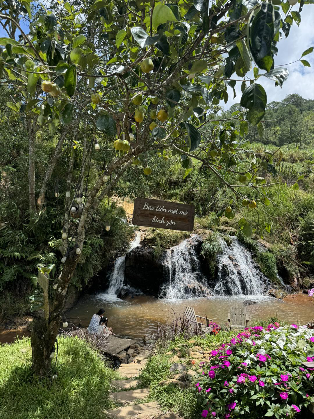 ផ្ទៃខាងក្រោយនិម្មិតដែលត្រូវបានពិនិត្យច្រើនបំផុតគឺនៅតាមផ្លូវទឹក នៅក្រោមដើមជ្រៃទុំ ឬជុំវិញផ្ទះឈើដ៏តូចស្អាត។ មិនត្រឹមតែមានទេសភាពស្រស់ស្អាតប៉ុណ្ណោះទេ ភោជនីយដ្ឋានក៏មានបម្រើនូវមុខម្ហូបជាច្រើនមុខដែលមានរសជាតិខ្ពស់ដូចជា មាន់អាំង H'Mong in tub ឬ surgeon hotpot ជួយឱ្យអ្នកត្រជាក់ និងរីករាយជាមួយម្ហូបក្នុងស្រុក។ នេះជាគោលដៅដែលមិនគួររំលងពេលមានគម្រោងធ្វើដំណើរទៅទីក្រុង Da Lat ដើម្បីបរបាញ់ផ្លែប៉ោមទុំ។
