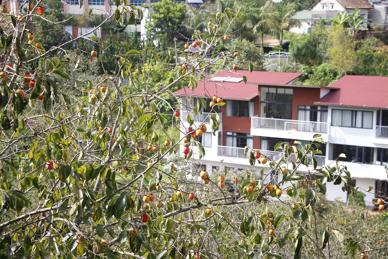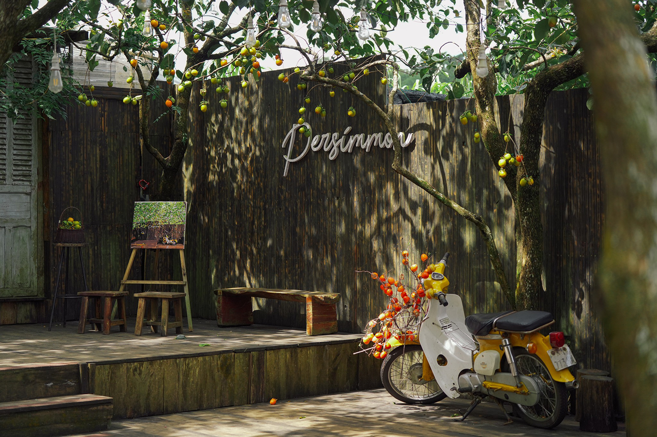 ជាមួយនឹងសួនច្បារទំហំជាង 5,000 ម៉ែត្រការ៉េ និងដើមផ្កាកុលាបបុរាណប្រហែល 100 ដើមដែលមានអាយុលើសពី 40 ឆ្នាំ ហាង Persimmon Café ត្រូវបានគេចាត់ទុកថាជា "ឋានសួគ៌ផ្លែប៉េសទុំ" នៃទីក្រុង Da Lat ។ ពូជ persimmon ដ៏ល្បីល្បាញដូចជា Tam Hai persimmon, ផ្លែពស់វែក, persimmon ការ៉េ ឬ persimmon ពែងនៅពេលទុំបង្កើតជាឈុតពណ៌ទឹកក្រូចដ៏អស្ចារ្យដែលធ្វើឱ្យសួនច្បារទាំងមូលភ្លឺ។ អ្វីដែលគួរឱ្យចាប់អារម្មណ៍នោះគឺថា ហាងរៀបចំកន្ត្រៃ និងកន្ត្រកសម្រាប់អតិថិជនរើសផ្លែឈើដោយខ្លួនឯង ដែលជាបទពិសោធន៍ដ៏កម្រមួយនៅពេលបរបាញ់ផ្លែប៉េសទុំនៅដាឡាត។