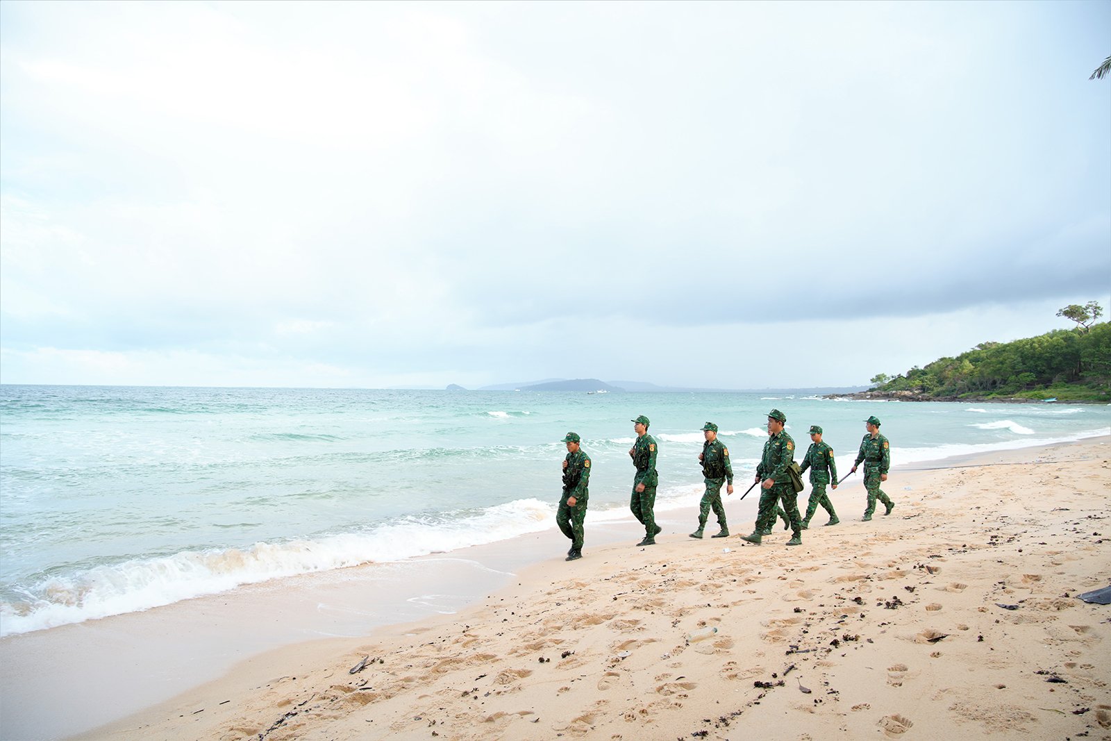 មន្ត្រីឆ្មាំព្រំដែនខេត្ត និងទាហានដើរល្បាតដើម្បីការពារអធិបតេយ្យភាពសមុទ្រ និងកោះ។