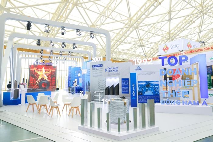 នៅឯការតាំងពិព័រណ៌ Hoa Phat Group បានឧទ្ទេសនាមអំពីដំណើរ 33 ឆ្នាំនៃការសាងសង់ និងការអភិវឌ្ឍន៍របស់ខ្លួន។ ពីការចាប់ផ្តើមដ៏លំបាក Hoa Phat បានក្លាយជាសហគ្រាសដែកថែបលេខ 1 នៅអាស៊ីអាគ្នេយ៍ ស្មើនឹងកំពូលទាំង 30 នៅលើពិភពលោក ដែលមានសមត្ថភាពរចនាដែក 16 លានតោន/ឆ្នាំ ចាប់ពីចុងឆ្នាំ 2025 ដែលរួមចំណែកលើកកំពស់ទីតាំងរបស់វៀតណាមនៅលើផែនទីដែកអន្តរជាតិ។