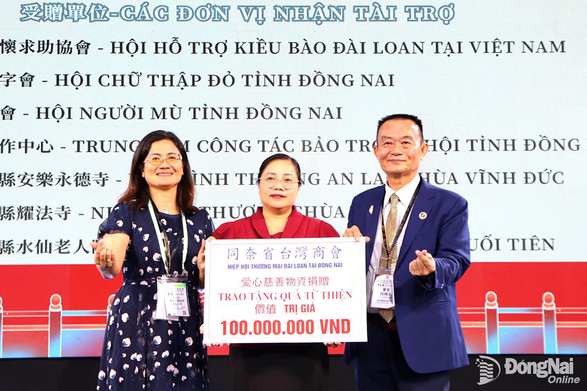 សភាពាណិជ្ជកម្មតៃវ៉ាន់ប្រចាំខេត្ត Dong Nai បានបរិច្ចាគថវិកាសប្បុរសធម៌ចំនួន 100 លានដុង ដល់សមាគមកាកបាទក្រហមខេត្ត Dong Nai ។ រូបថត៖ ង៉ុក លៀន |