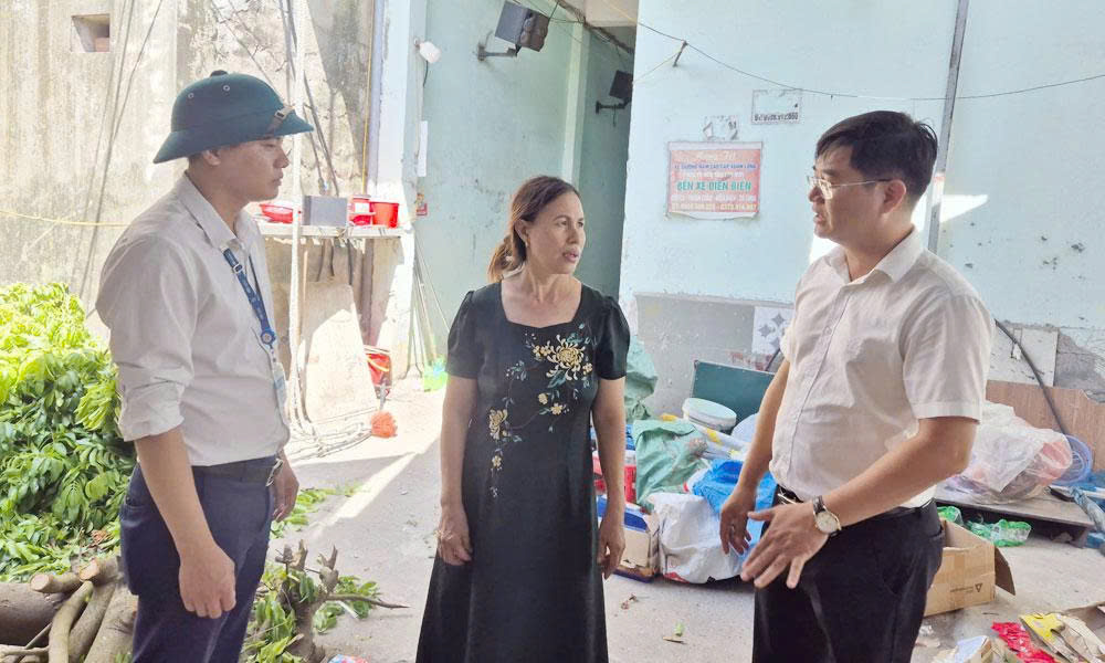 សមមិត្ត Le Hoang Bach ប្រធានគណៈកម្មាធិការប្រជាជនសង្កាត់ Nenh (ស្តាំស្តាំ) បានពិភាក្សា និងចាប់យកអនុសាសន៍ និងសំណើរបស់ប្រជាជន។ |