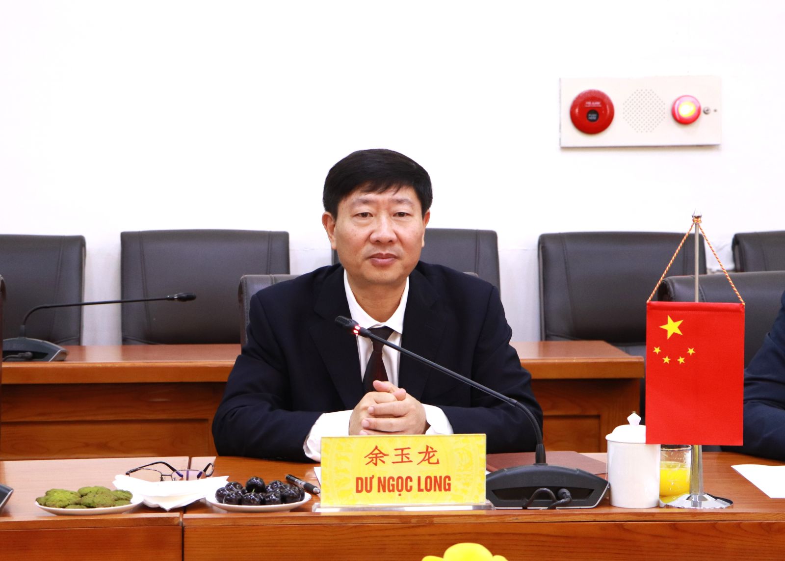 សមមិត្ត Du Ngoc Long លេខាគណៈកម្មាធិការបក្សស្រុក Kim Binh ខេត្ត Yunnan (ចិន) ថ្លែងមតិក្នុងកិច្ចប្រជុំ។