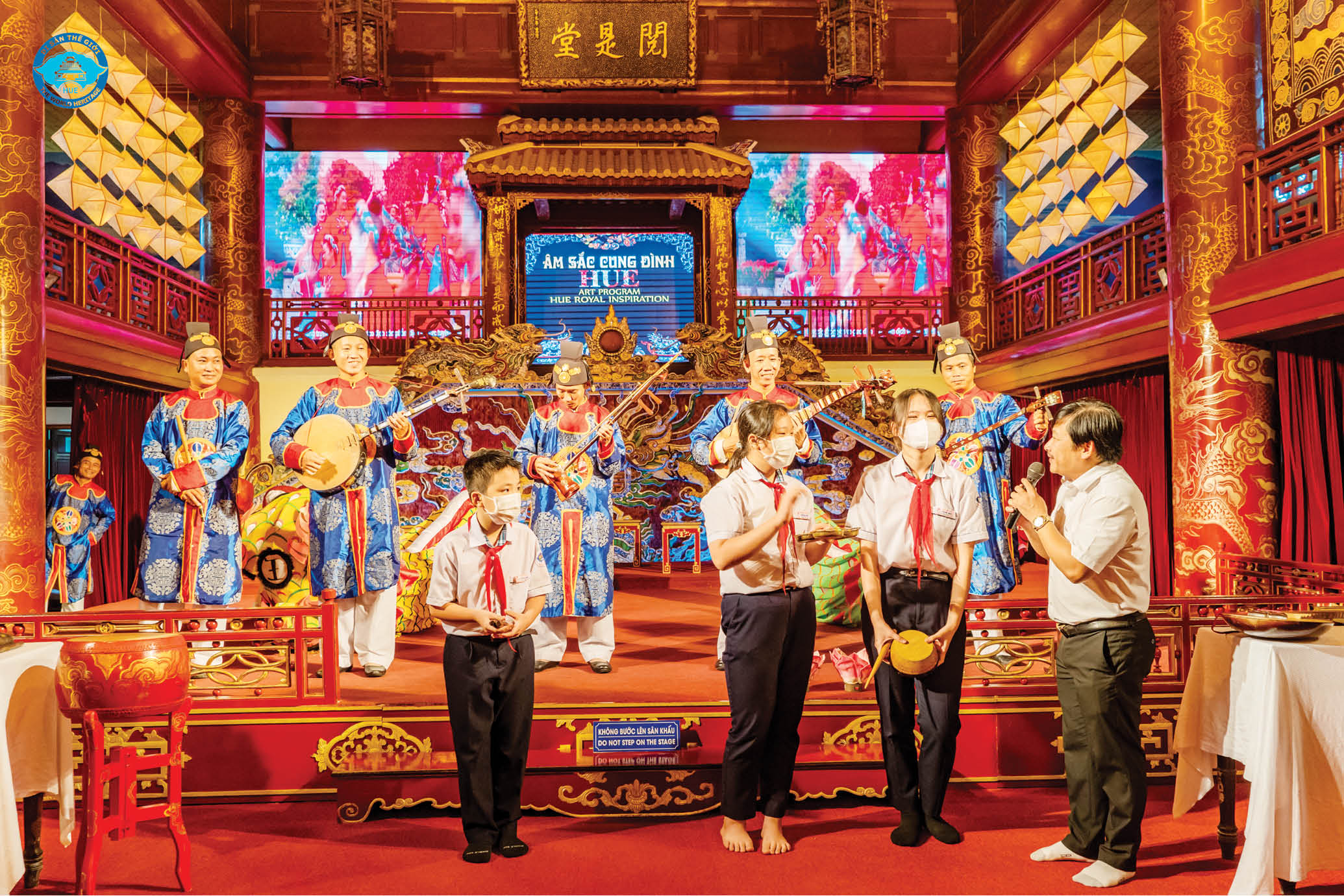 សិស្សានុសិស្សចូលរួមសកម្មភាពស្វែងយល់អំពីបេតិកភណ្ឌវប្បធម៌ របស់ Hue ។ រូបថត៖ Bao Minh |