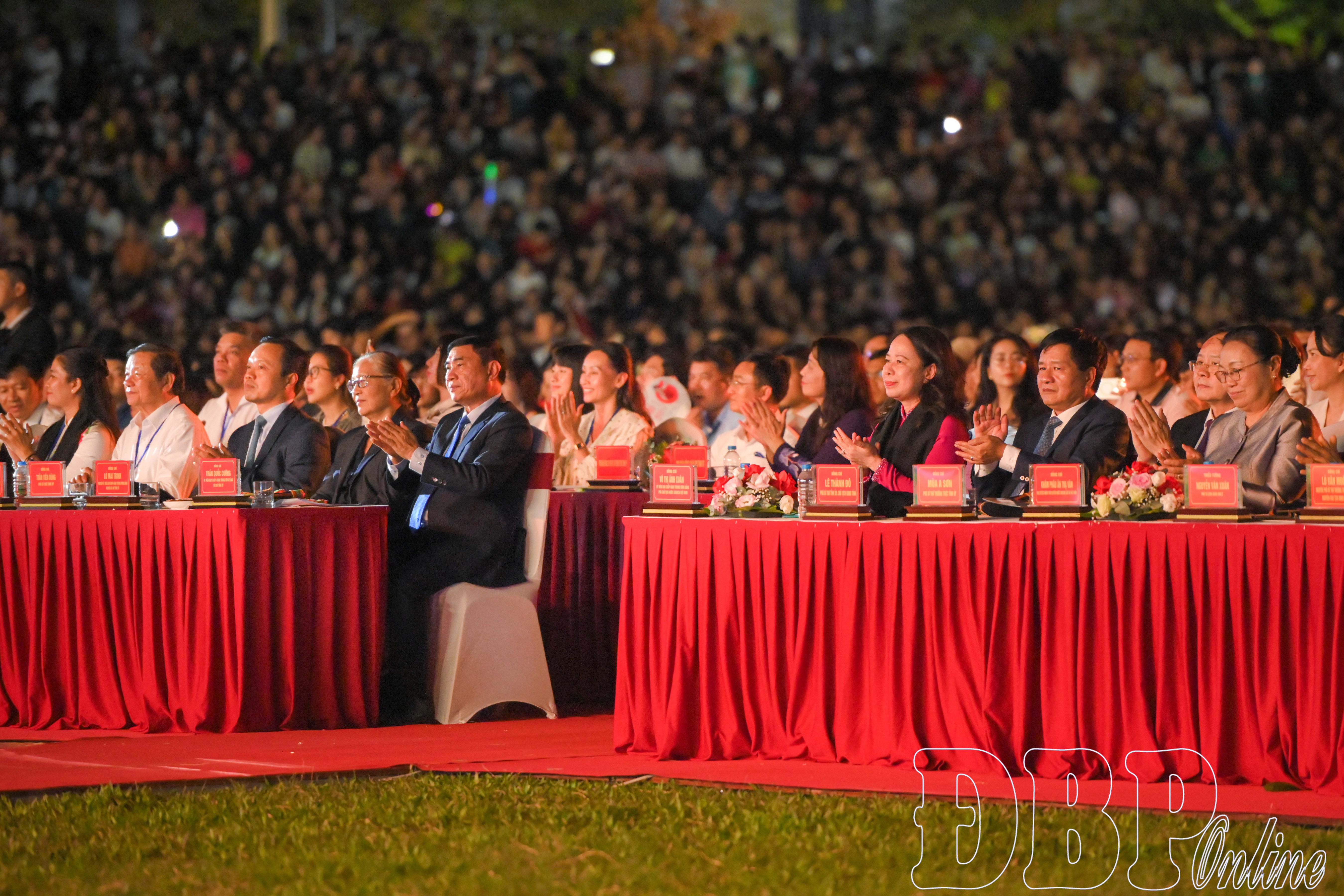 នៅលើឆាកដ៏ភ្លឺស្វាងនៅកណ្តាលពហុកីឡដ្ឋានខេត្ត ទស្សនិកជនរាប់ម៉ឺននាក់បានជ្រួតជ្រាបក្នុងបរិយាកាសដ៏កម្សត់ និងរំជួលចិត្តរបស់យុវវ័យ។ ការរួមបញ្ចូលគ្នានៃតន្ត្រីដ៏រស់រវើក និងពន្លឺទំនើបបានបង្កើតបរិយាកាសមហោស្រពដ៏រំជើបរំជួល ដោយប្រែក្លាយពហុកីឡដ្ឋានខេត្តទៅជា "ឆាកក្រៅ" ចម្រុះពណ៌នាំឱ្យពិធីបើកមហោស្រព "Quintessence of the Northwest - Dien Bien ឆ្នាំ 2025" កាន់តែជិតស្និទ្ធជាមួយប្រជាជន និងភ្ញៀវទេសចរមកពីជុំវិញពិភពលោក។