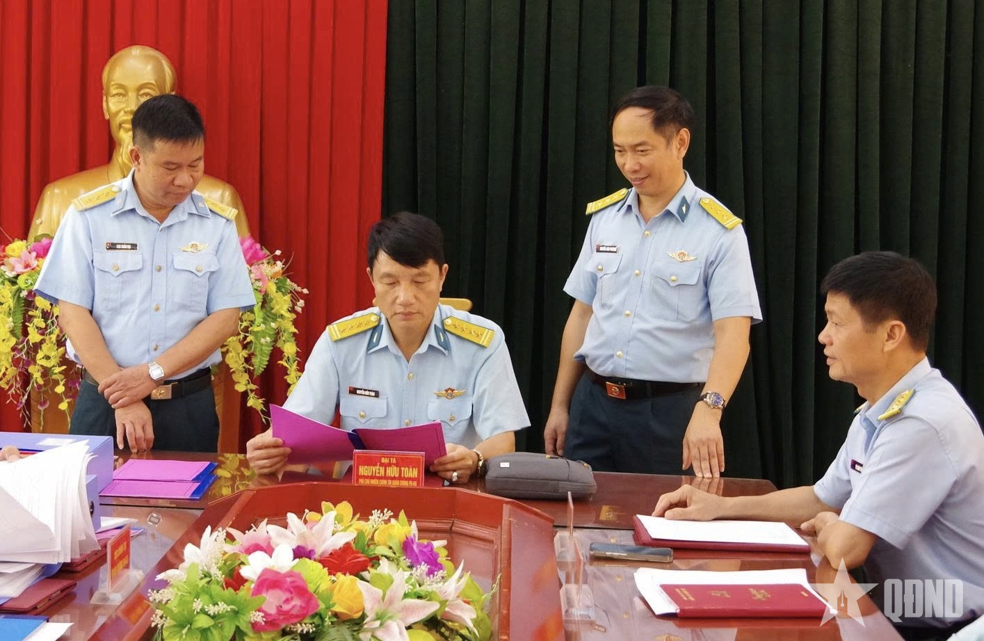 លោកវរសេនីយ៍ឯក Nguyen Huu Toan អនុប្រធានកិច្ចការនយោបាយនៃក្រសួងការពារដែនអាកាស - សេវាកម្មកងទ័ពអាកាស និងគណៈប្រតិភូបានត្រួតពិនិត្យឯកសារ CTĐ និង CTCT ។ |
