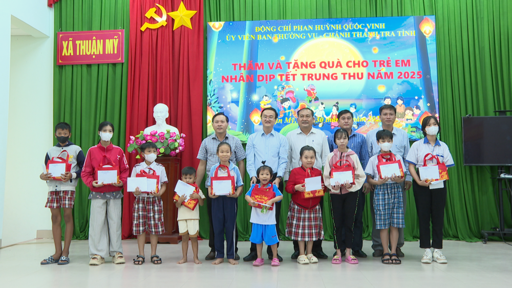អធិការខេត្ត Phan Huynh Quoc Vinh និងថ្នាក់ដឹកនាំមូលដ្ឋានបានប្រគល់អំណោយពាក់កណ្តាលរដូវស្លឹកឈើជ្រុះដល់កុមារចំនួន ៥៩ នាក់។ អំណោយនីមួយៗមានតម្លៃ 650.000 ដុង រួមទាំងគោម នំព្រះខែ និងសាច់ប្រាក់ 500.000 ដុង។