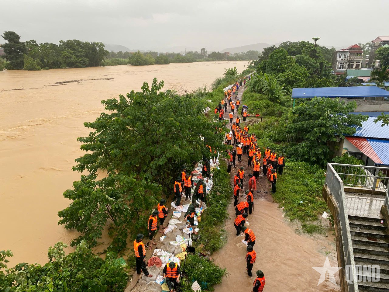 ប្រឈមមុខនឹងស្ថានភាពនោះ បញ្ជាការដ្ឋានយោធាខេត្ត Thai Nguyen បានសម្របសម្រួលជាមួយកម្លាំងមូលដ្ឋានដើម្បីចល័តនាយទាហាន និងទាហានជាង ១.០០០ នាក់នៃកងទ័ពធម្មតា កងជីវពល និងកម្លាំងបម្រុង រួមជាមួយនឹងទូកម៉ូតូរាប់សិបគ្រឿង ដើម្បីជួយសង្គ្រោះប្រជាជនពីតំបន់គ្រោះថ្នាក់។