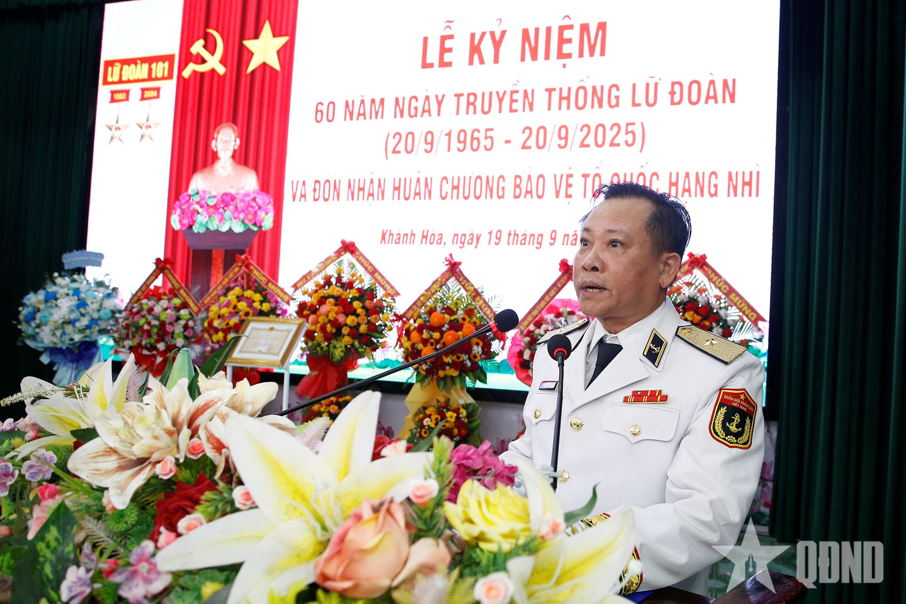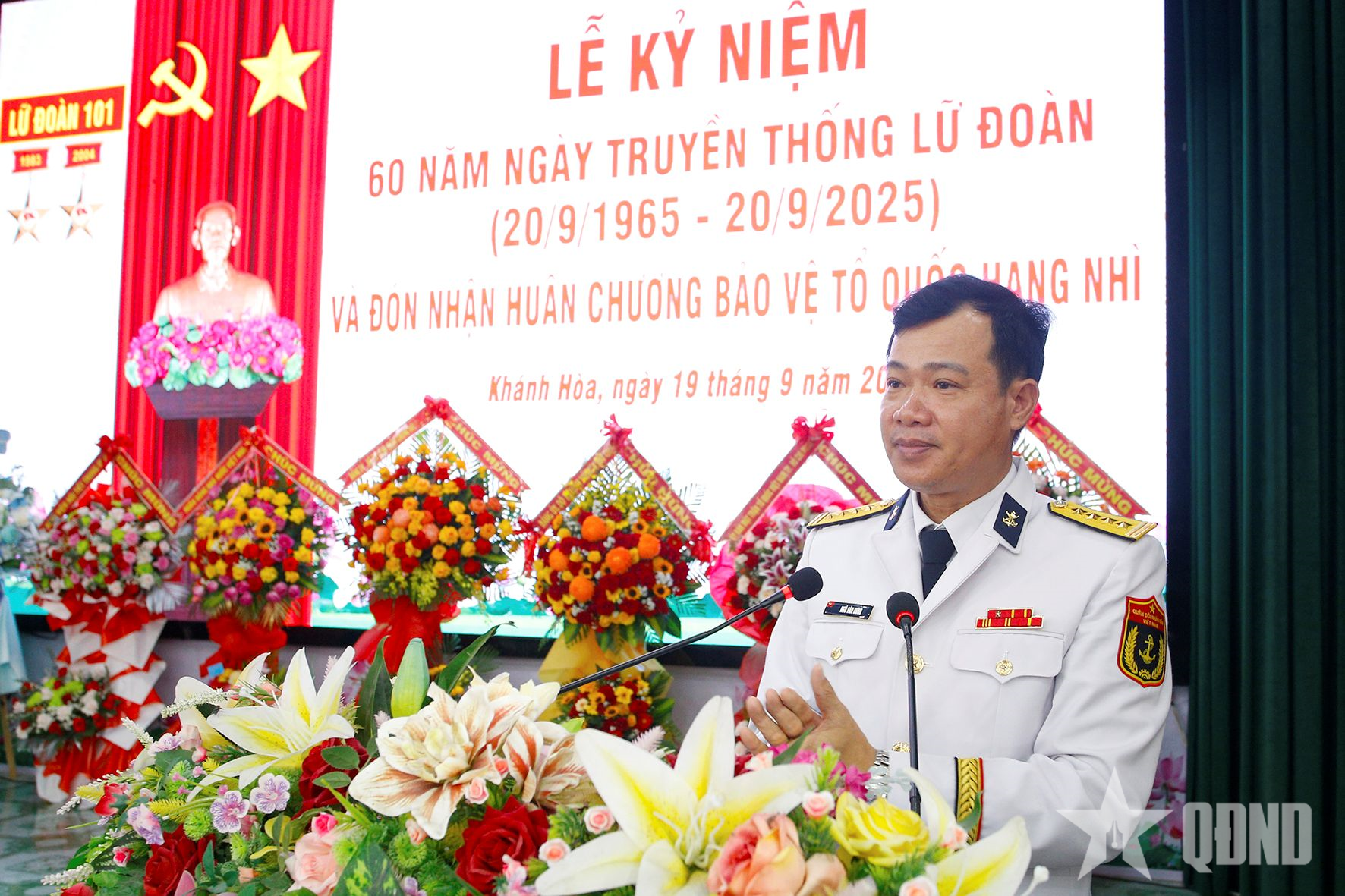 ថ្លែងមតិក្នុងពិធីនេះ ឧត្តមនាវីទោ Nguyen Thien Quan បានអបអរសាទរចំពោះស្នាដៃឆ្នើមរបស់កងពលតូចលេខ ១០១ ក្នុងរយៈពេល ៦០ ឆ្នាំកន្លងមក។ ទន្ទឹមនឹងនោះ លោកបានសំណូមពរថា នាពេលខាងមុខ កងពលតូចលេខ១០១ បន្តធ្វើបានល្អក្នុងវិស័យអប់រំ នយោបាយ និងមនោគមវិជ្ជា; កសាងកម្មាភិបាល និងយោធិនប្រកបដោយឆន្ទៈនយោបាយរឹងមាំ ស្មោះត្រង់ចំពោះបក្ស មាតុភូមិ និងប្រជាជន។ កងពលតូចធ្វើឱ្យប្រសើរឡើងឥតឈប់ឈរនូវកម្រិតនៃអង្គភាពបញ្ជាការសម្របសម្រួលការប្រយុទ្ធជាពិសេសនៅក្នុងលក្ខខណ្ឌនៃសង្គ្រាមបច្ចេកវិទ្យាខ្ពស់; បំពេញការងារបានល្អក្នុងការបណ្តុះបណ្តាល ការត្រៀមខ្លួនប្រយុទ្ធ ជួយប្រជាជនក្នុងការទប់ស្កាត់ និងជំនះផលវិបាកនៃគ្រោះធម្មជាតិ និងជំងឺរាតត្បាត។ សហការីកសាងអង្គភាពសុវត្ថិភាពជាមួយតំបន់សុវត្ថិភាព បន្តបំភ្លឺរូបភាពរបស់ទាហានពូ-ទាហានជើងទឹកក្នុងដួងចិត្តប្រជាជន។