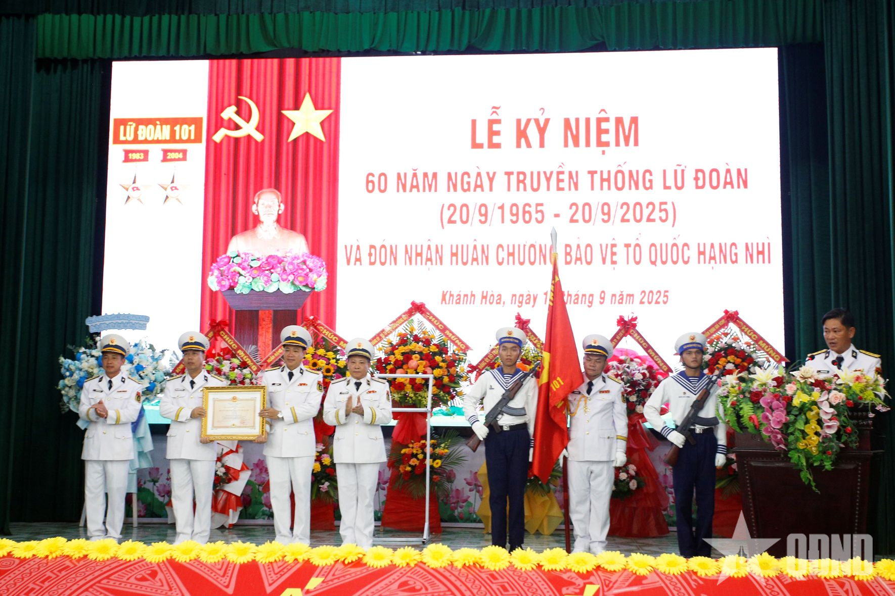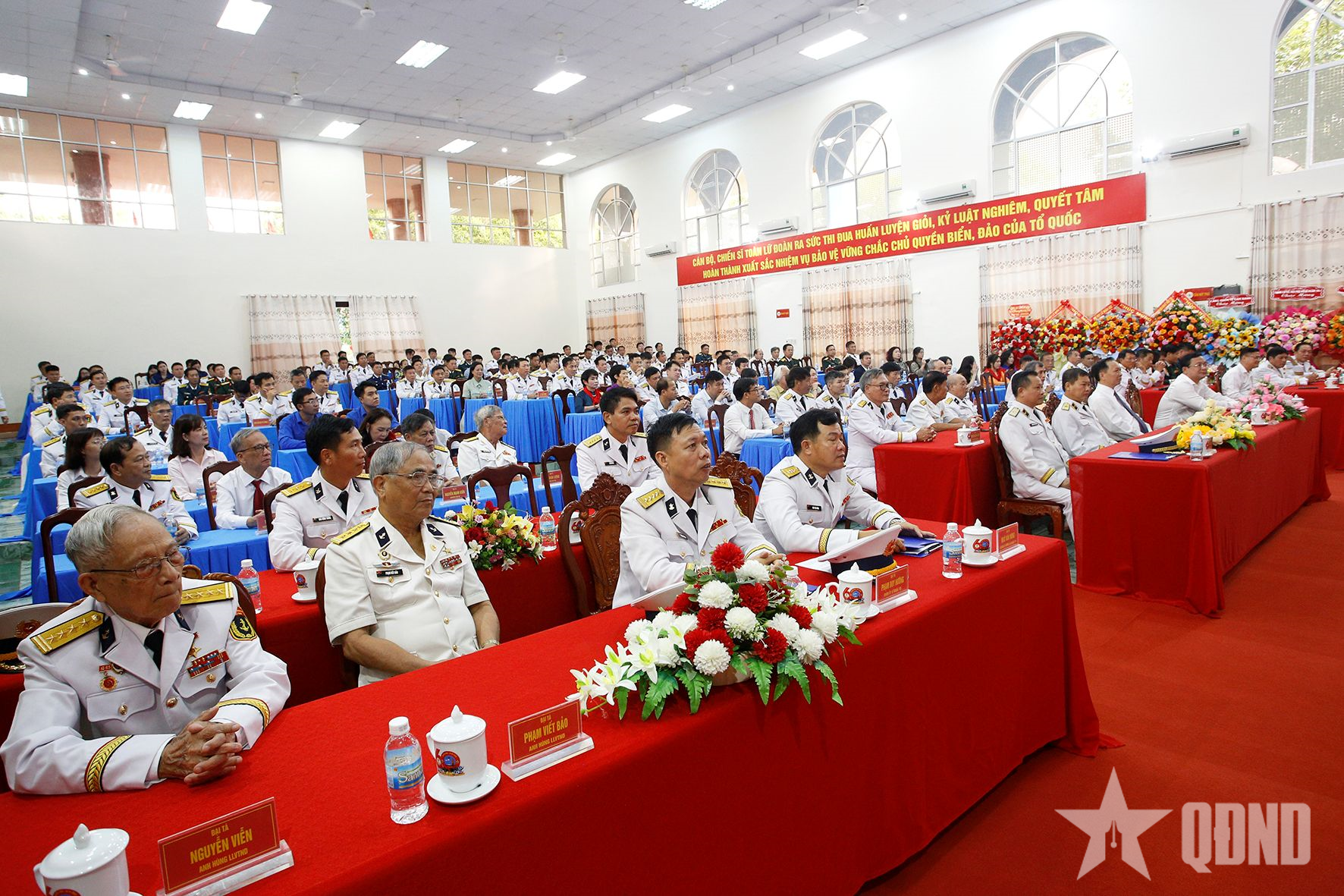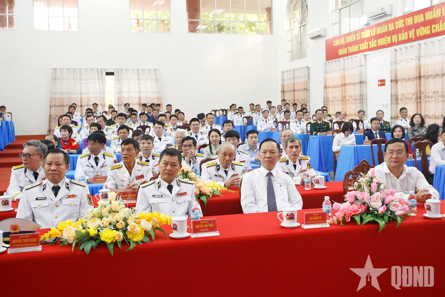 អញ្ជើញចូលរួមក្នុងពិធីមានឧត្តមនាវីទោ Nguyen Thien Quan អគ្គសេនាធិការរងកងទ័ពជើងទឹក; ឧត្តមនាវីទោ Nguyen Anh Tuan មេបញ្ជាការតំបន់ជើងទឹកទី៤; តំណាងអាជ្ញាធរមូលដ្ឋាន អង្គភាពបងប្អូន; អាជីវកម្ម អង្គភាពកងកម្លាំងប្រដាប់អាវុធក្នុងតំបន់; តំណាងទីភ្នាក់ងារ និងអង្គភាពនៃកងទ័ពជើងទឹក ភូមិភាគទី៤ និងនាយទាហាន និងពលទាហាននៃកងពលតូចលេខ១០១ ឆ្លងកាត់សម័យកាល។
