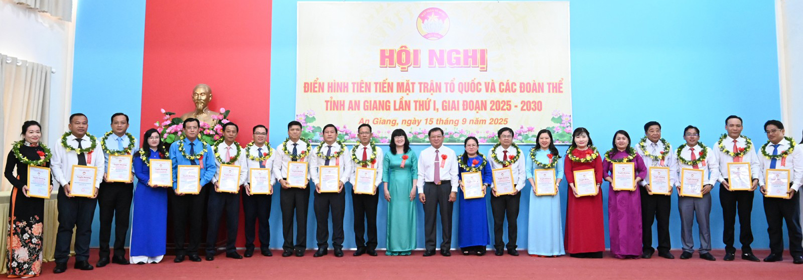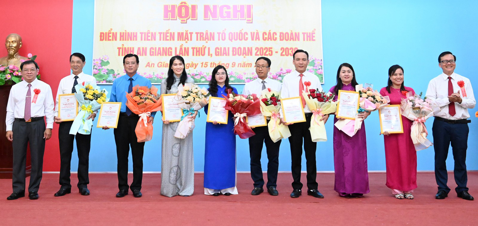ក្នុងឱកាសនេះ គណៈកម្មាធិការអចិន្ត្រៃយ៍នៃគណៈកម្មាធិការរណសិរ្សមាតុភូមិវៀតណាមខេត្ត An Giang បានលើកសរសើរសមូហភាពចំនួន ៨ និងបុគ្គលចំនួន ៤២ ដែលមានស្នាដៃឆ្នើម និងគំរូគំរូក្នុងការអនុវត្តចលនាត្រាប់តាមស្នេហាជាតិ ដំណាក់កាល ២០២០ - ២០២៥; បានផ្តល់សេចក្តីសម្រេចស្តីពីការចូលនិវត្តន៍មុនកាលកំណត់ និងការលាលែងពីតំណែងដល់មន្ត្រីរាជការ បុគ្គលិកសាធារណៈ និងកម្មករចំនួន២០រូប។