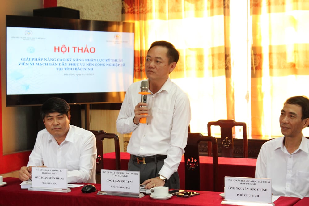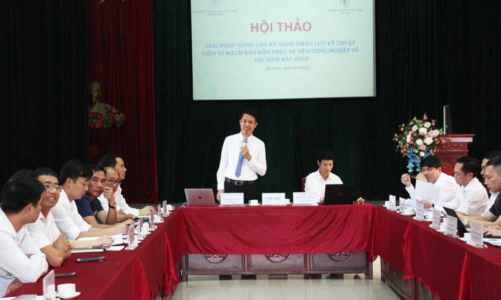 កប.អនឡាញ - នារសៀលថ្ងៃទី ១ តុលា សម្ព័ន្ធសមាគមវិទ្យាសាស្ត្រ និងបច្ចេកវិទ្យាខេត្តបានសម្របសម្រួលជាមួយមហាវិទ្យាល័យឧស្សាហកម្ម Bac Ninh រៀបចំសិក្ខាសាលាមួយដោយប្រធានបទ “ដំណោះស្រាយលើកកំពស់ជំនាញអ្នកបច្ចេកទេសមីក្រូឈីប semiconductor ដើម្បីបម្រើឧស្សាហកម្មឌីជីថលនៅខេត្ត Bac Ninh”។