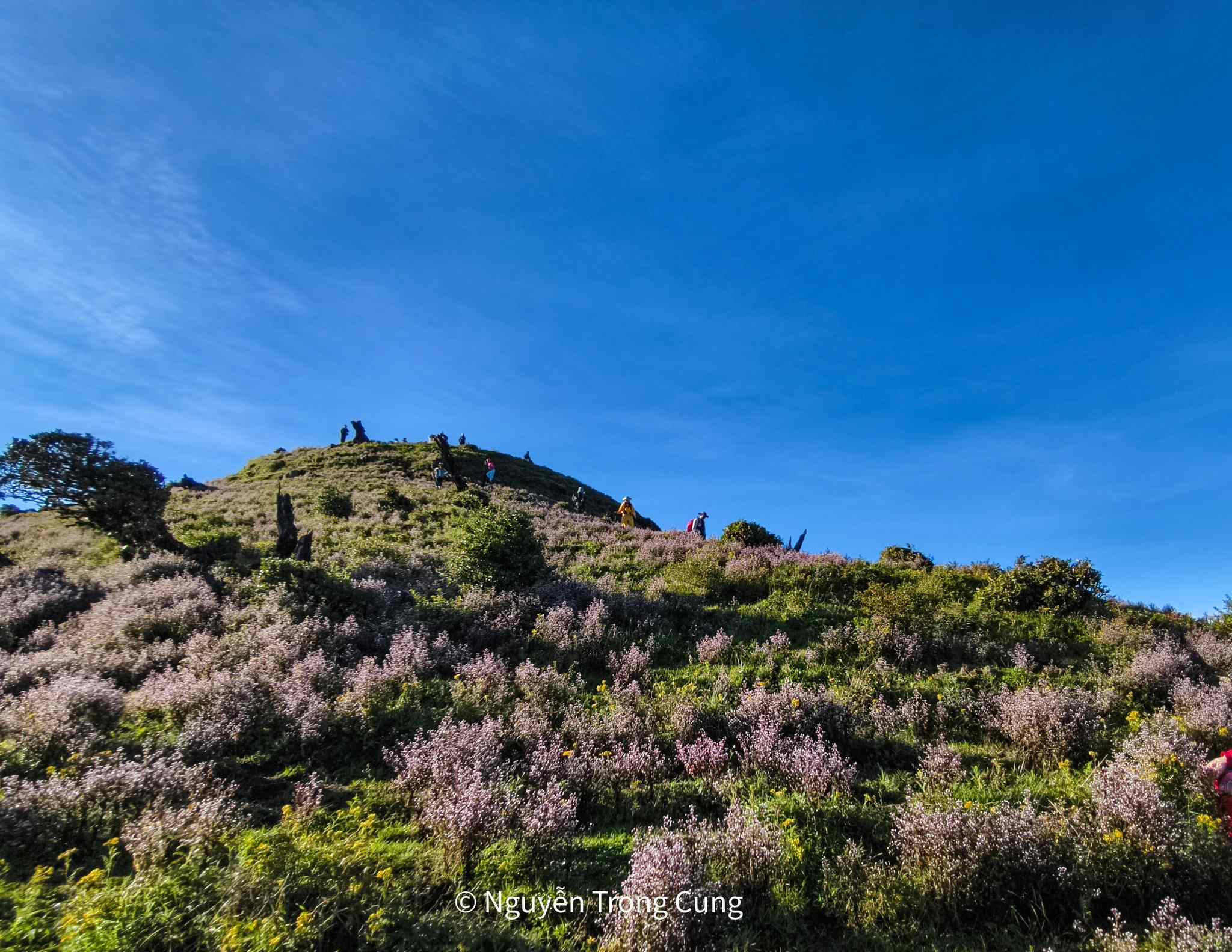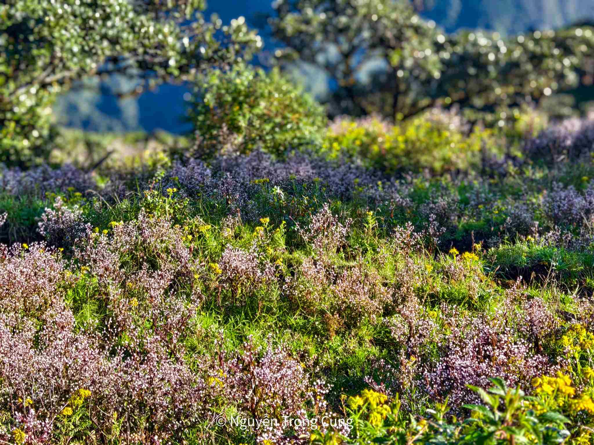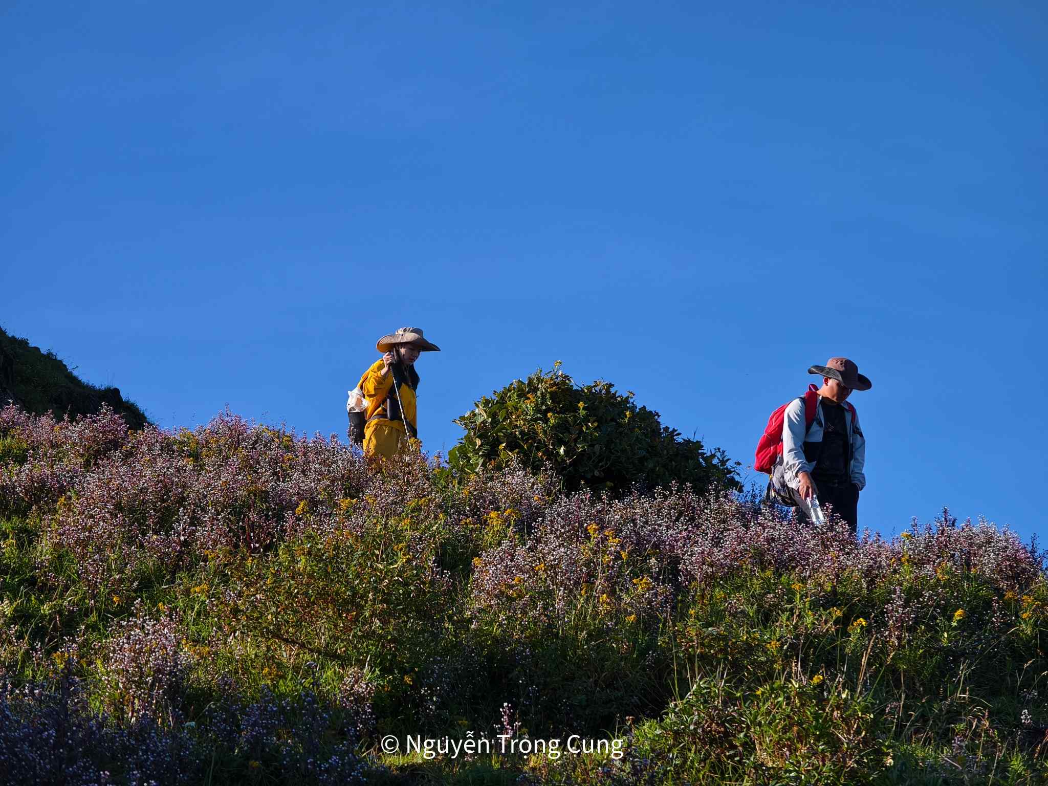 ចាប់ពីចុងខែកញ្ញាដល់ពាក់កណ្តាលខែតុលា ផ្កា Chi pau រីកក្នុងពេលដំណាលគ្នានៅលើជម្រាលភ្នំ។ នៅលើផ្លូវដើរកម្សាន្ត អ្នកទស្សនាអាចមើលឃើញផ្កាកំរាលព្រំវែងយ៉ាងងាយ រយៈកម្ពស់ខ្ពស់ជាងមុន ពណ៌ស្វាយកាន់តែងងឹត។ រូបថត៖ Nguyen Trong Cung