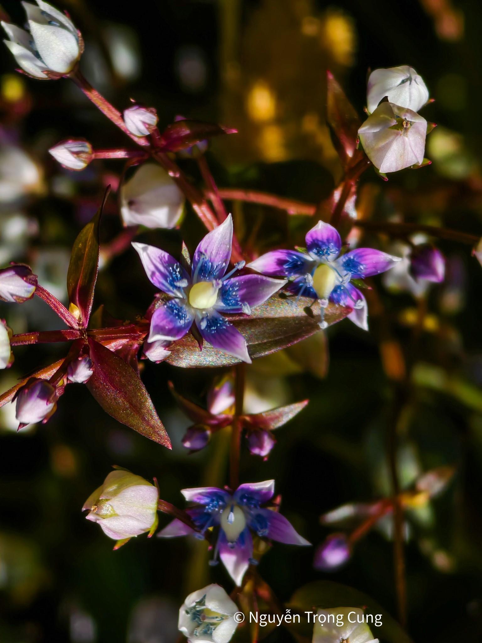 ផ្កា Chi pau ដែលគេស្គាល់ថាជាស្មៅទឹកឃ្មុំនាគ ឬថ្នាំពណ៌ស្វាយធំ មានពន្លកតូចៗ ពណ៌ស្វាយលាយជាមួយពណ៌ស។ រូបថត៖ Nguyen Trong Cung