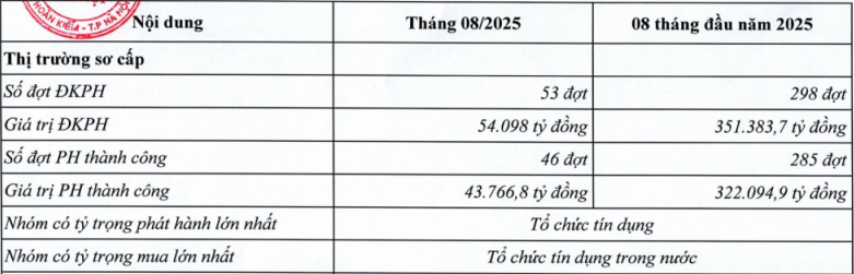 ក្នុងរយៈពេល 4 ខែដែលនៅសល់នៃឆ្នាំ 2025 វាត្រូវបានគេប៉ាន់ប្រមាណថានឹងមានប្រហែល 69.740 ពាន់លានដុងនៃសញ្ញាប័ណ្ណចាស់ទុំ ដែលក្នុងនោះភាគច្រើនជាមូលបត្របំណុលអចលនទ្រព្យដែលមាន 29.883 ពាន់លានដុង ស្មើនឹង 49% ។ ទាក់ទិននឹងស្ថានភាពនៃការបញ្ចេញព័ត៌មានមិនប្រក្រតី មានលេខកូដសញ្ញាប័ណ្ណចំនួន 4 ដែលមានការប្រាក់យឺតយ៉ាវ និងការទូទាត់ប្រាក់ដើមដែលមានតម្លៃ 313 ពាន់លានដុងក្នុងខែសីហា។