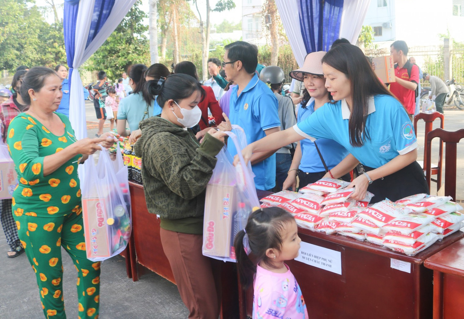 អនុប្រធានអចិន្ត្រៃយ៍នៃសហភាពនារី ប្រធានគណៈកម្មាធិការកិច្ចការនារីខេត្ត An Giang Nguyen Thi Quyen ប្រគល់ធុងសំរាមដល់សមាជិកនារី។