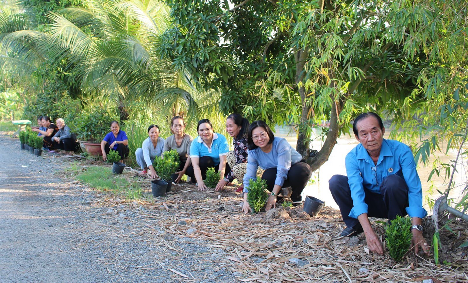 កម្មាភិបាល សមាជិកសហជីពស្ត្រី និងសហជីពបានដាំដើមឈើអនុវត្តគម្រោង “ផ្លូវគ្រប់គ្រងដោយស្ត្រីដោយគ្មានសំរាម” នៅឃុំ Vinh An។
