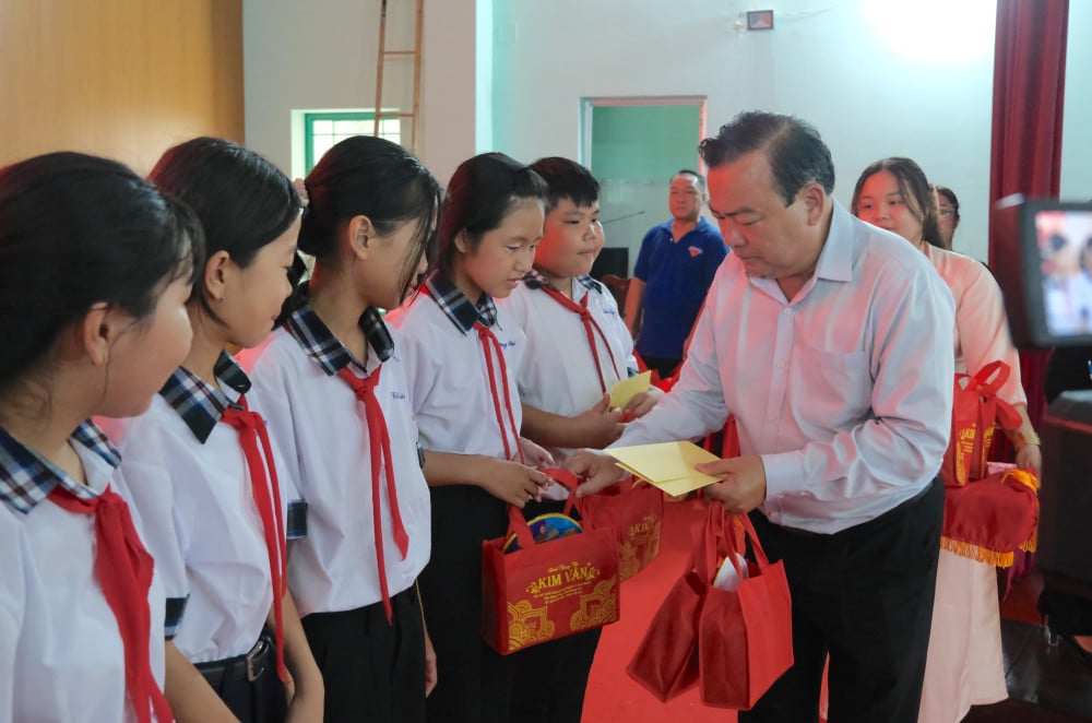 ថ្លែងមតិក្នុងពិធីប្រគល់អំណោយ អនុប្រធានគណៈកម្មាធិការប្រជាជនខេត្ត លោក Pham Tan Hoa បានផ្ញើក្តីគោរព និងលើកទឹកចិត្តដល់ក្មួយៗ ខិតខំពុះពារជំនះការលំបាក មានភាពល្អ និងសិក្សាបានល្អ។ ជូនពរពួកគេនូវពិធីបុណ្យពាក់កណ្តាលរដូវស្លឹកឈើជ្រុះដ៏កក់ក្តៅដែលពោរពេញទៅដោយក្តីស្រឡាញ់។