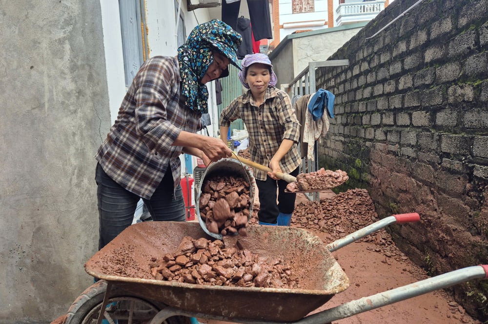 ភ្លាមៗបន្ទាប់ពីដឹងពីស្ថានភាពនេះ វួដ Tien Phong បានបញ្ជូនបុគ្គលិកជំនាញទៅកន្លែងកើតហេតុ ដើម្បីណែនាំ និងជួយដល់ប្រជាពលរដ្ឋក្នុងការជម្នះនូវផលវិបាក។ នៅព្រឹកថ្ងៃទី១០ តុលា គ្រួសារលោក Hoang បានជួលអេស្កាវ៉ាទ័រដើម្បីរុះដំបូល កាត់បន្ថយបន្ទុកលើតំបន់បាក់ដី និងដឹកដី និងថ្មទៅកន្លែងប្រមូលផ្តុំតាមការណែនាំ។ ជាមួយគ្នានេះ ការបូមខ្សាច់ និងឈូសឆាយដី និងថ្មនៅតាមប្រឡាយដែលបិទនោះ ក៏ត្រូវដាក់ពង្រាយជាបន្ទាន់ផងដែរ។